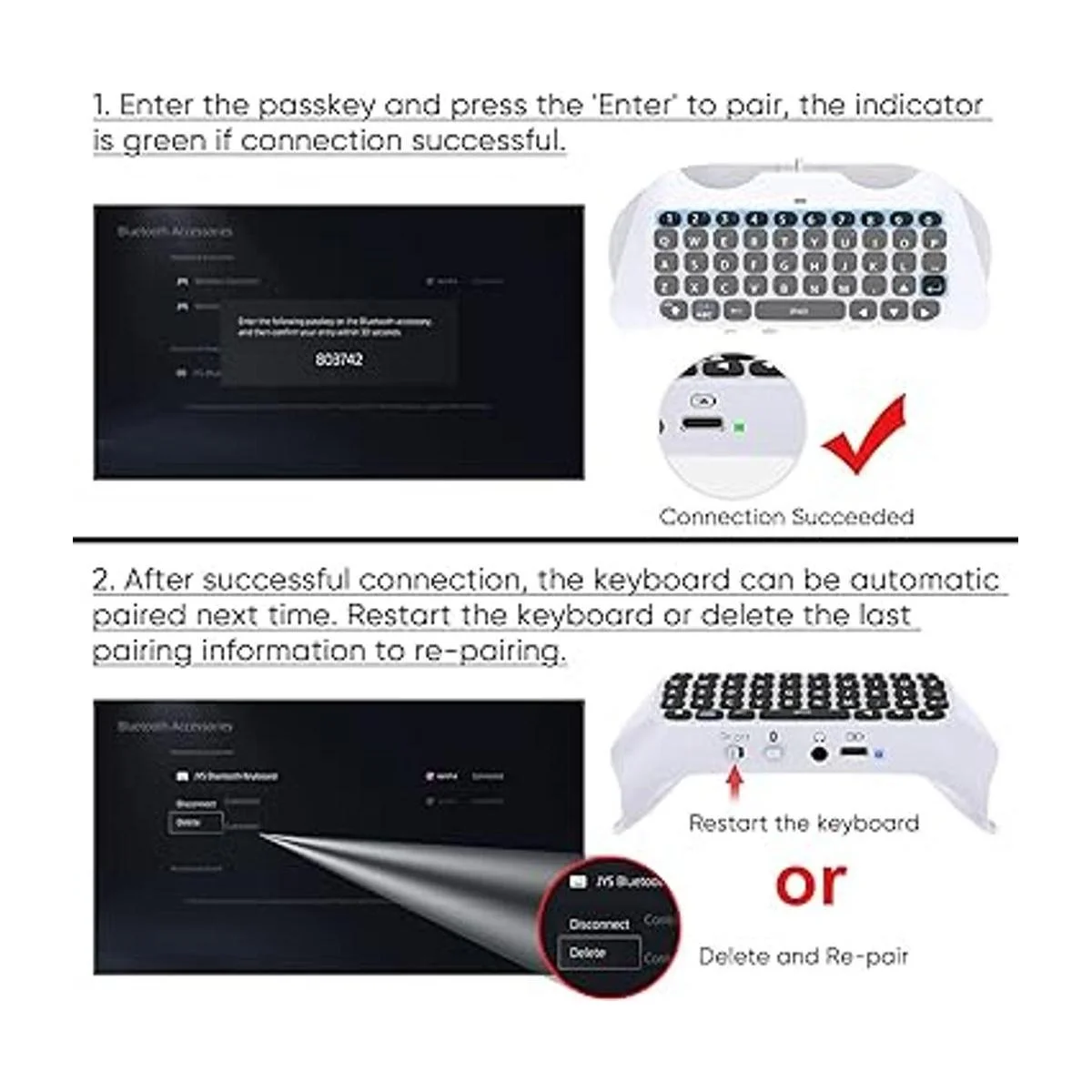 Tablero de chat de voz: completo para teclado QWERTY PS5 y tablero de chat de voz para enviar mensajes y chatear, conveniente para que tú y tus compañeros de equipo dominen y disfruten mejor el juego. Antes de usar, asegúrate de que el teclado esté alimentado y coincida con éxito, de lo contrario el teclado no funcionará