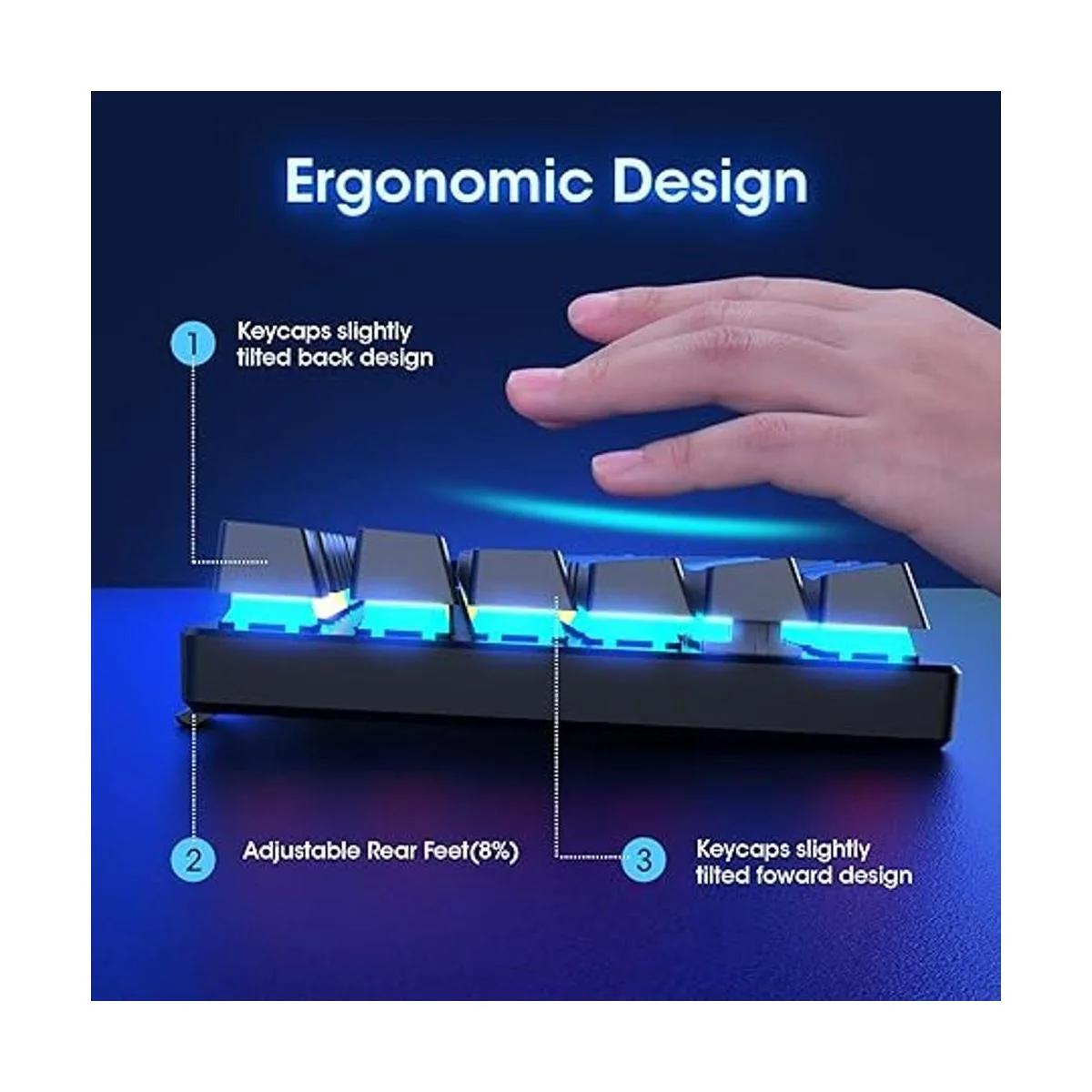 Teclado mecánico: interruptores azules sensibles: el teclado RisoPhy cuenta con teclas de clic que te ofrecen una mayor precisión y una respuesta más rápida con un agradable sonido de clic al escribir. Este teclado es más cómodo de escribir, ya que cuenta con un viaje más profundo de teclas, mayor retroalimentación y más espacio entre teclas. Para aquellos que prefieren teclados con una sensación más táctil y clic, nuestro teclado con interruptores azules es una buena opción.