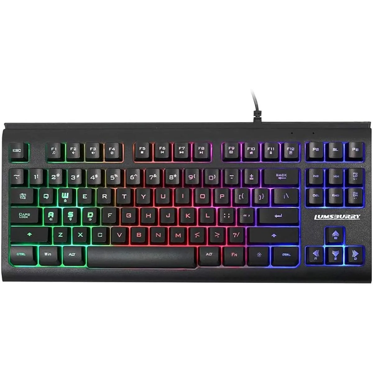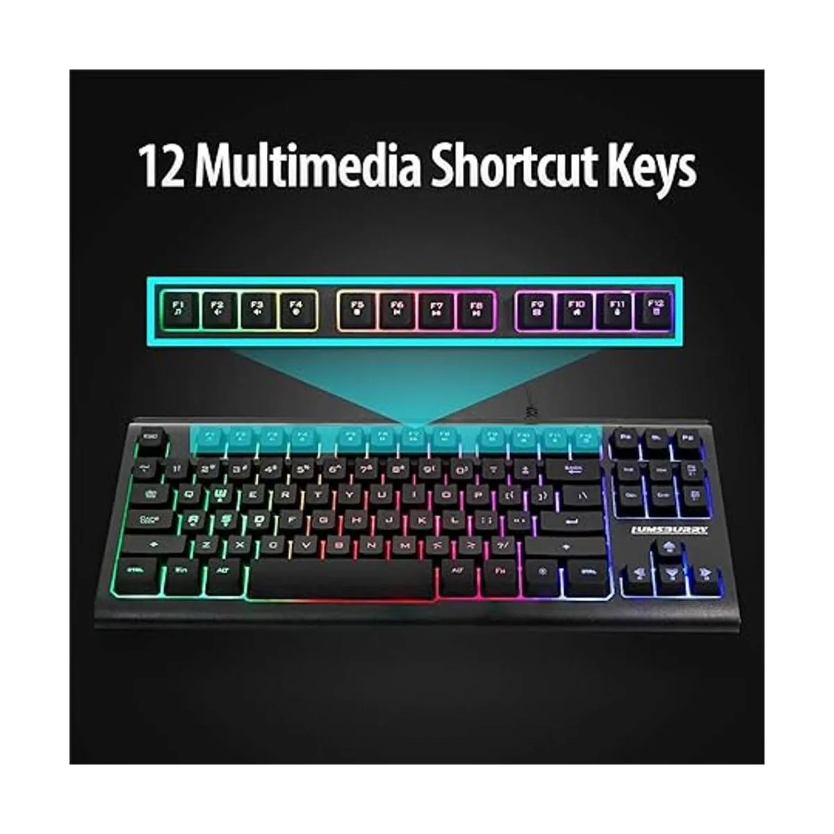 Teclado para juegos con retroiluminación LED arcoíris de 87 teclas, teclado compacto con 12 teclas de acceso directo multimedia, teclado USB con cable para PC y jugadores, oficina