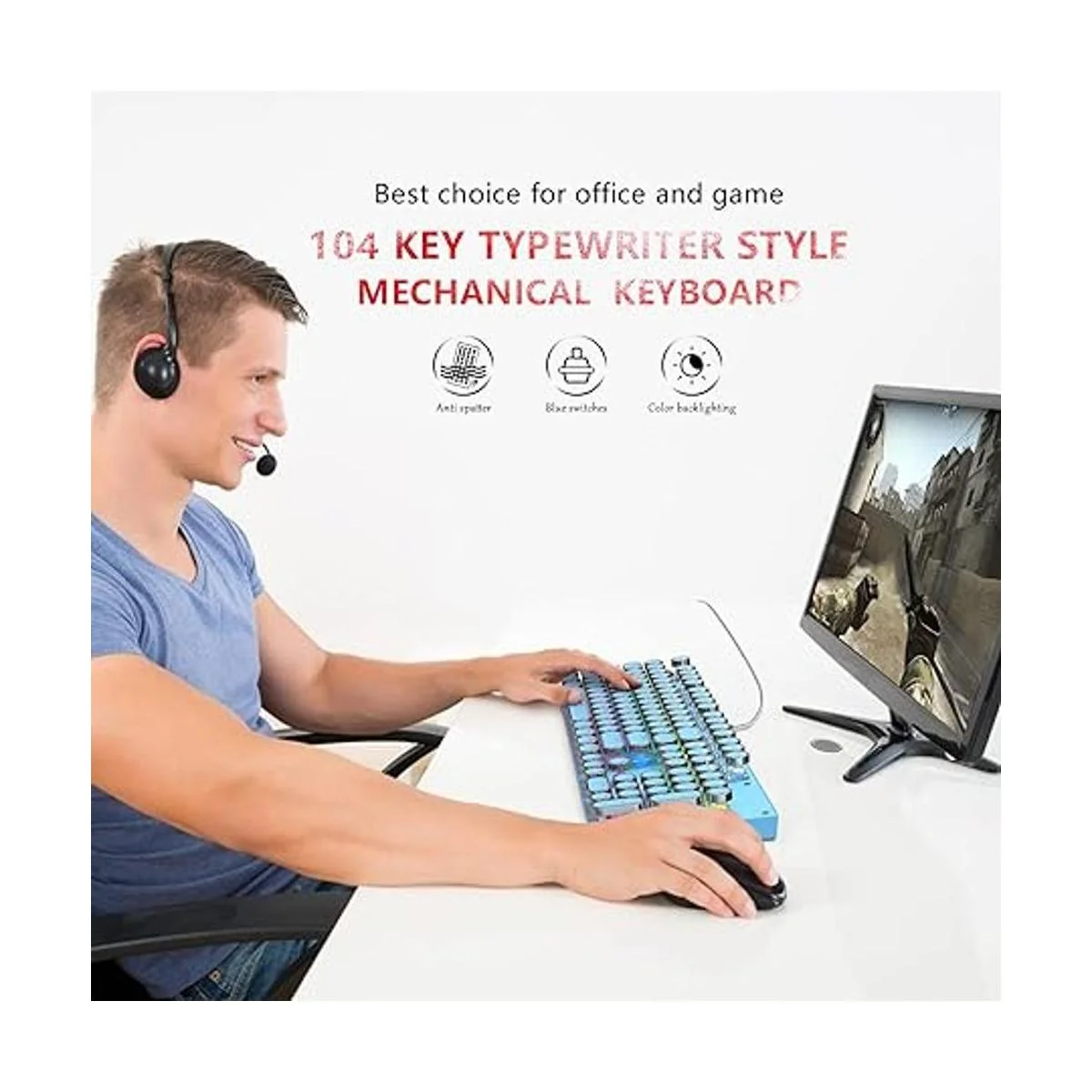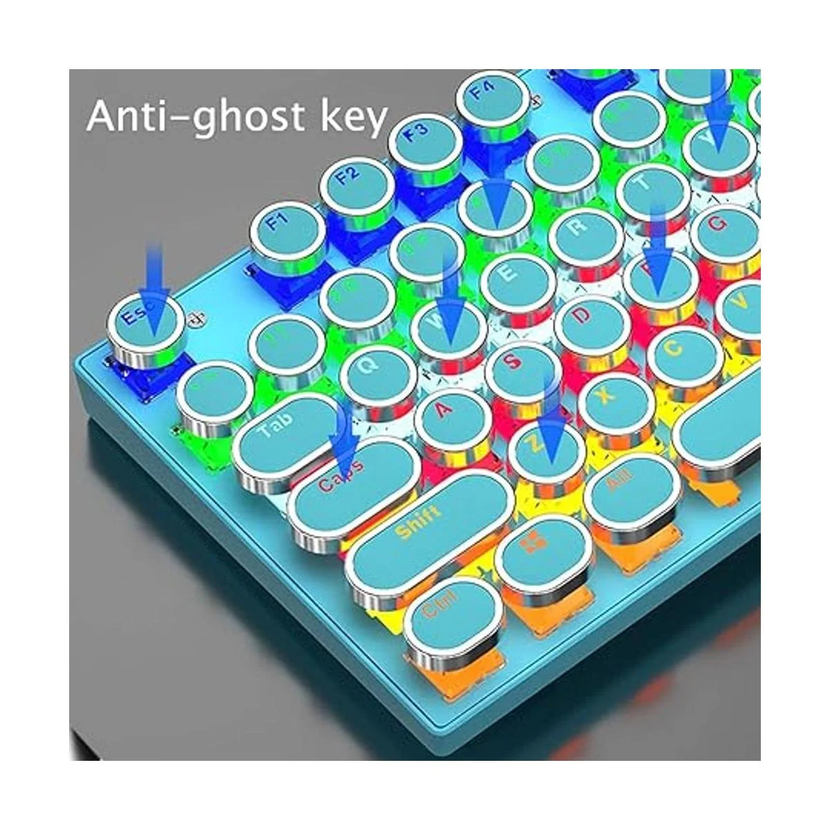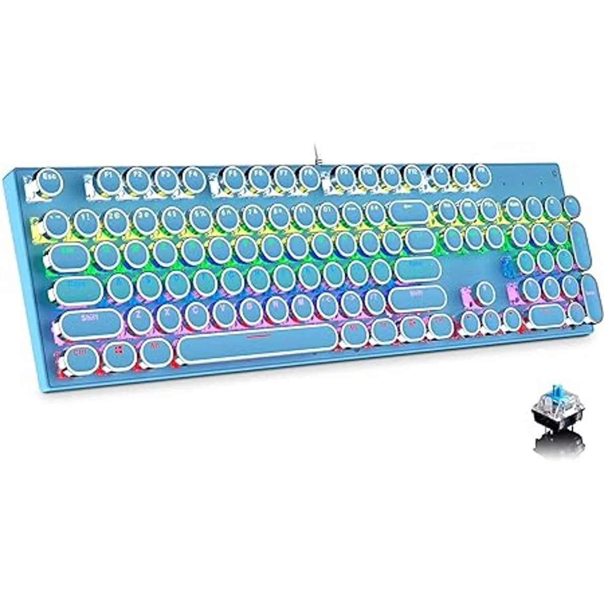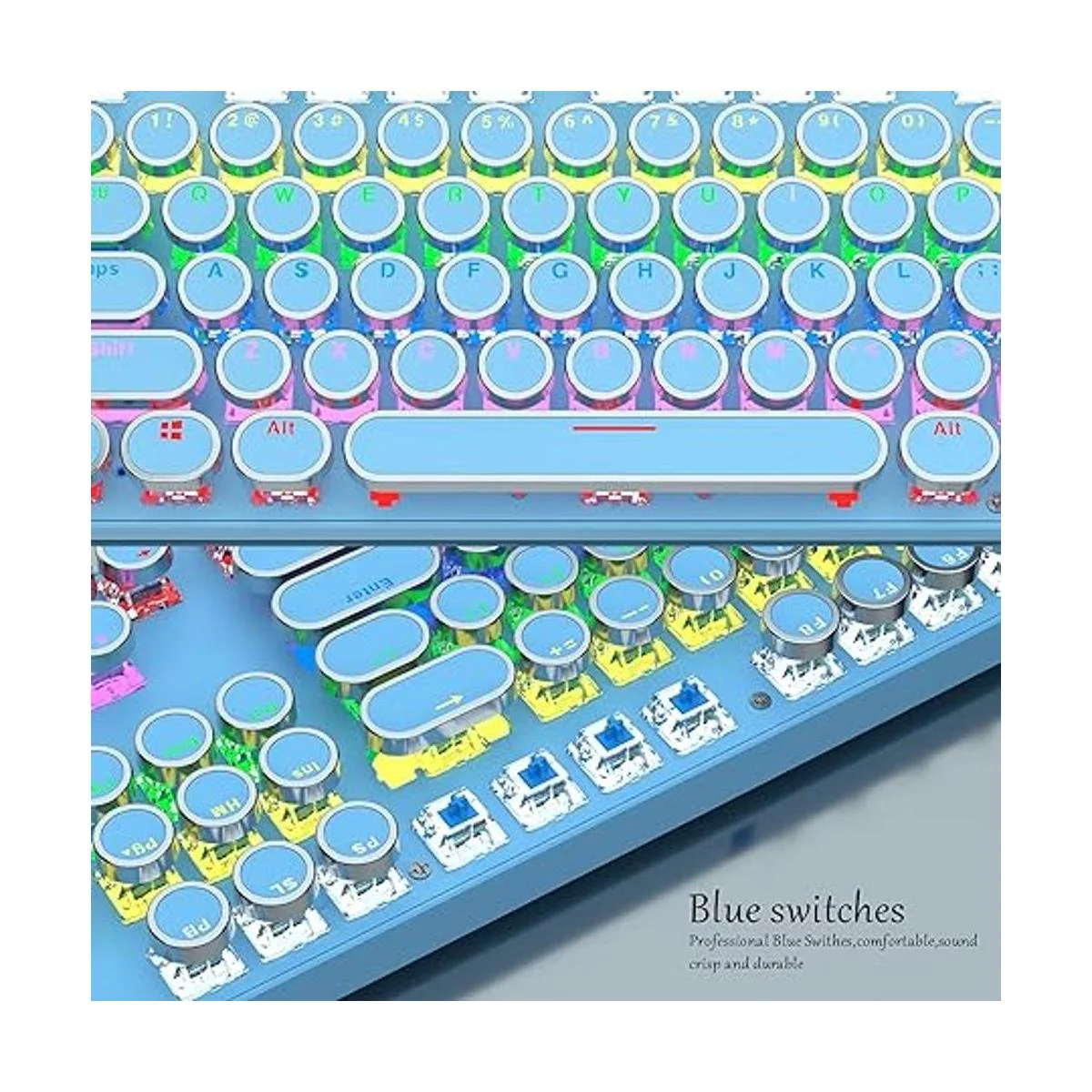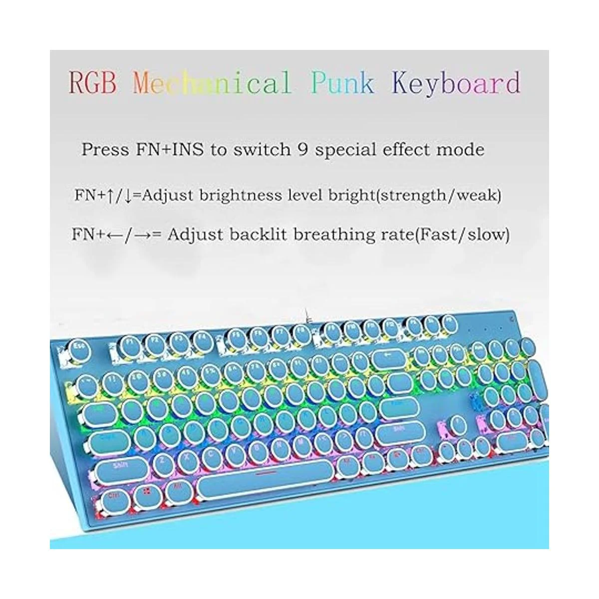 Teclado para juegos, estilo retro punk, interruptor azul de teclado mecánico con 9 modos de retroiluminación RGB verdaderos, uso para juegos y oficina, elegante teclado mecánico rosa tecla redonda azul de 104 teclas