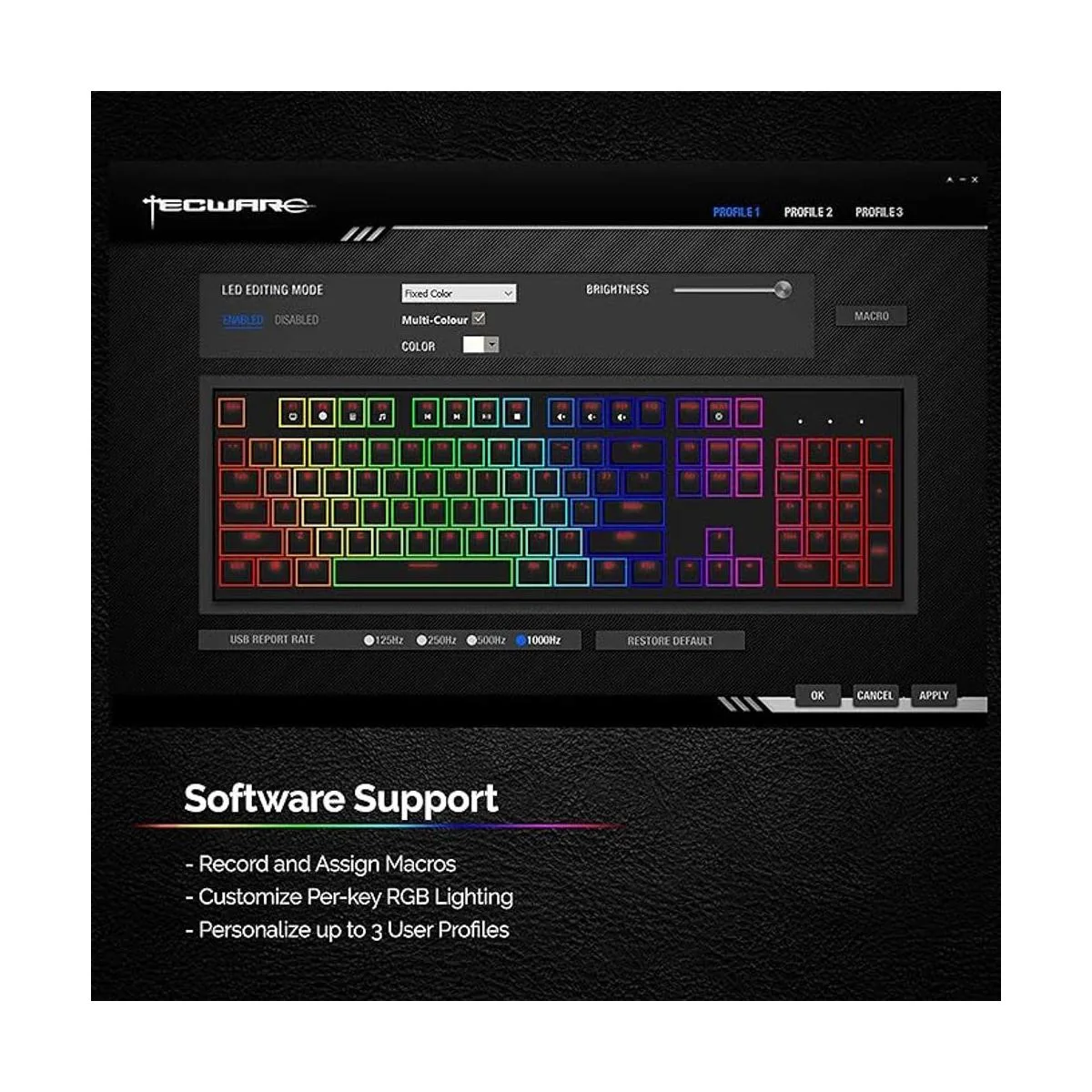 SPEED ADVANTAGE With full Nkey rollover and 1000Hz pooling rate, Tecware keyboards allow faster and smoother gaming experience. The depression of each key is detected individually, meaning all key presses will be registered, no matter how many keys you press down simultaneously