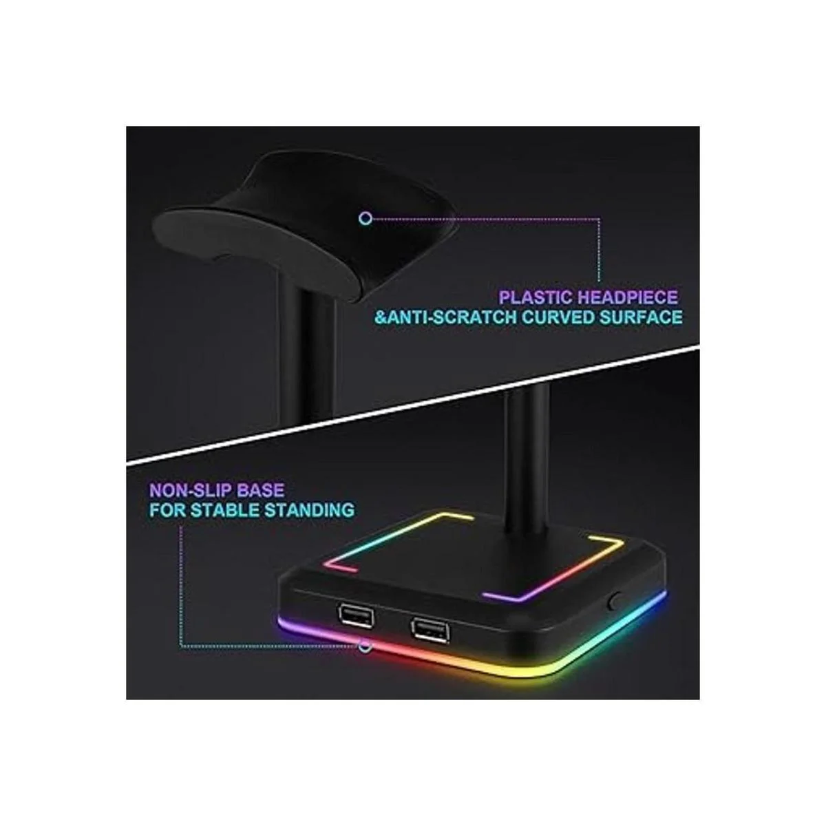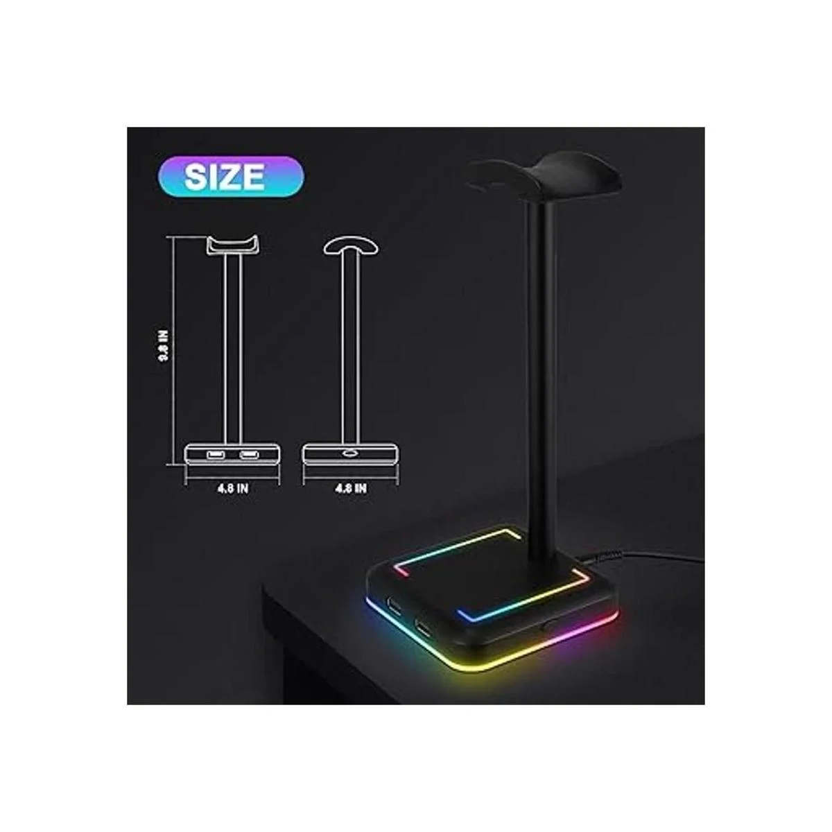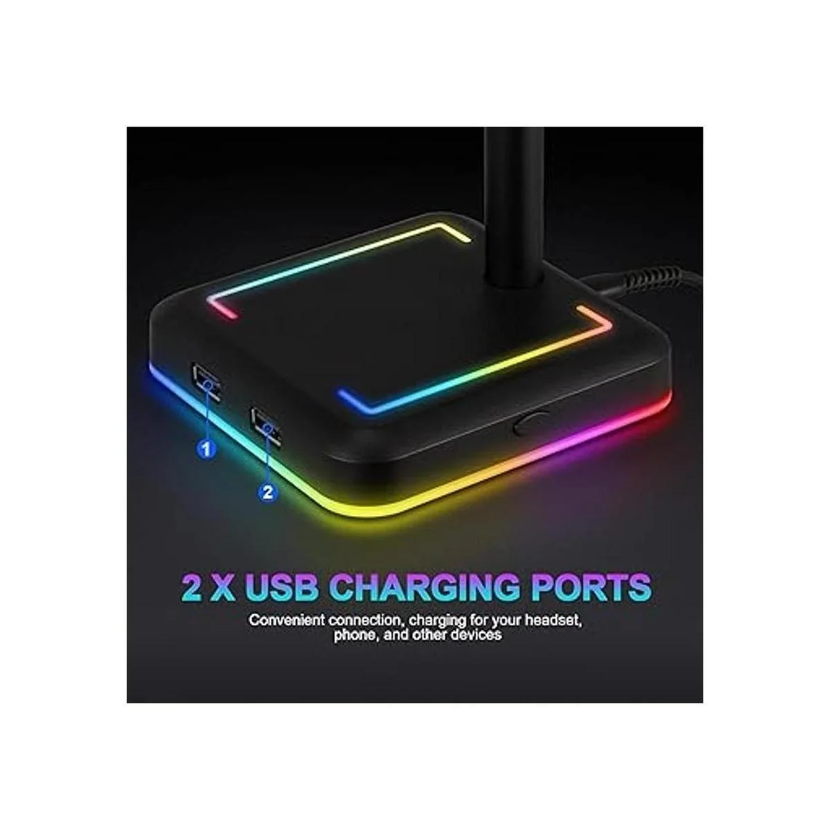TEEDOR Soporte para auriculares, soporte para auriculares RGB para juegos con 2 puertos de cargador USB y 10 modos de iluminación para juegos de PC de escritorio, accesorios para auriculares