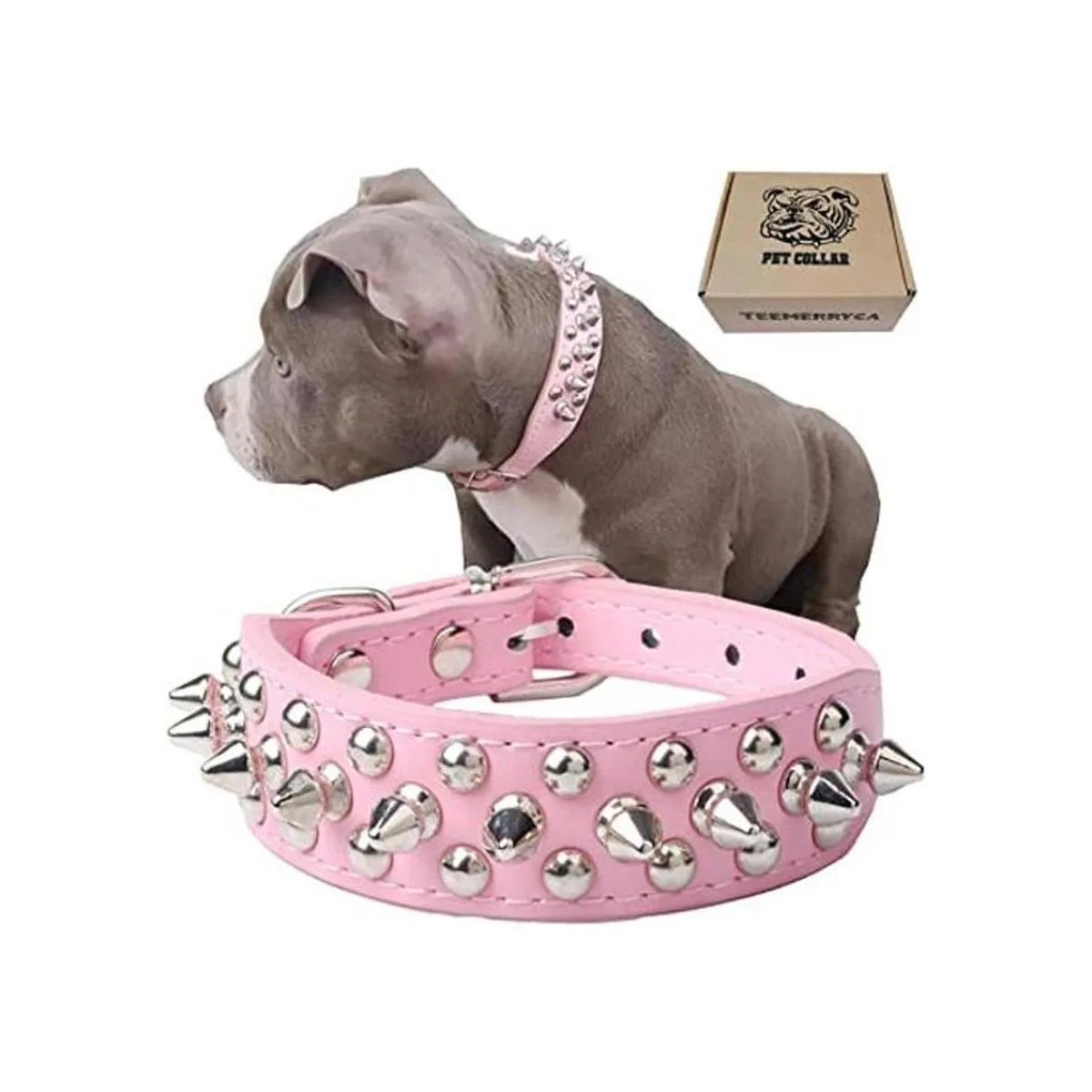 Teemerryca Collares para perro, ajustables, de piel de microfibra con púas punzantes y una pelota chillona de regalo, para mascotas pequeñas, medianas y grandes, como gatos y perros Pitbull, Bulldog o Pugs