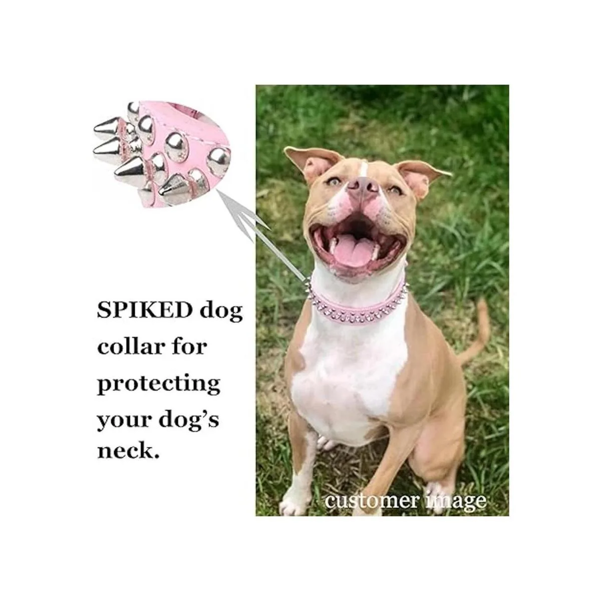 Collar de perro con púas: las púas no son demasiado afiladas, por lo que no dañan la piel de tu mascota y los botones no arrancan el pelo de los perros. Después de ponerle el collar con púas, tus mascotas no podrán destruir el collar o ser mordidas alrededor del cuello debido a los picos. Les da una protección adicional durante el tiempo de juego pesado entre gatos/perros.