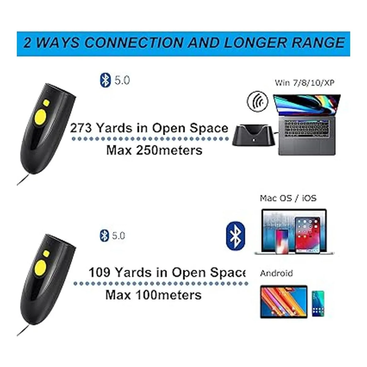 Tecnología inalámbrica Bluetooth 5.0: el escáner se puede conectar con tu portátil, PC, teléfono móvil, tableta, iPhone, iPad, directamente a través de Bluetooth. El rango de transferencia bluetooth de dirección puede hasta 398 pies máximo