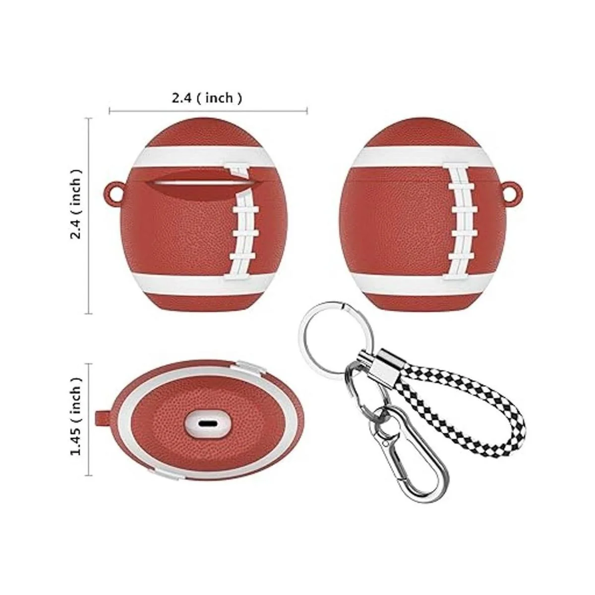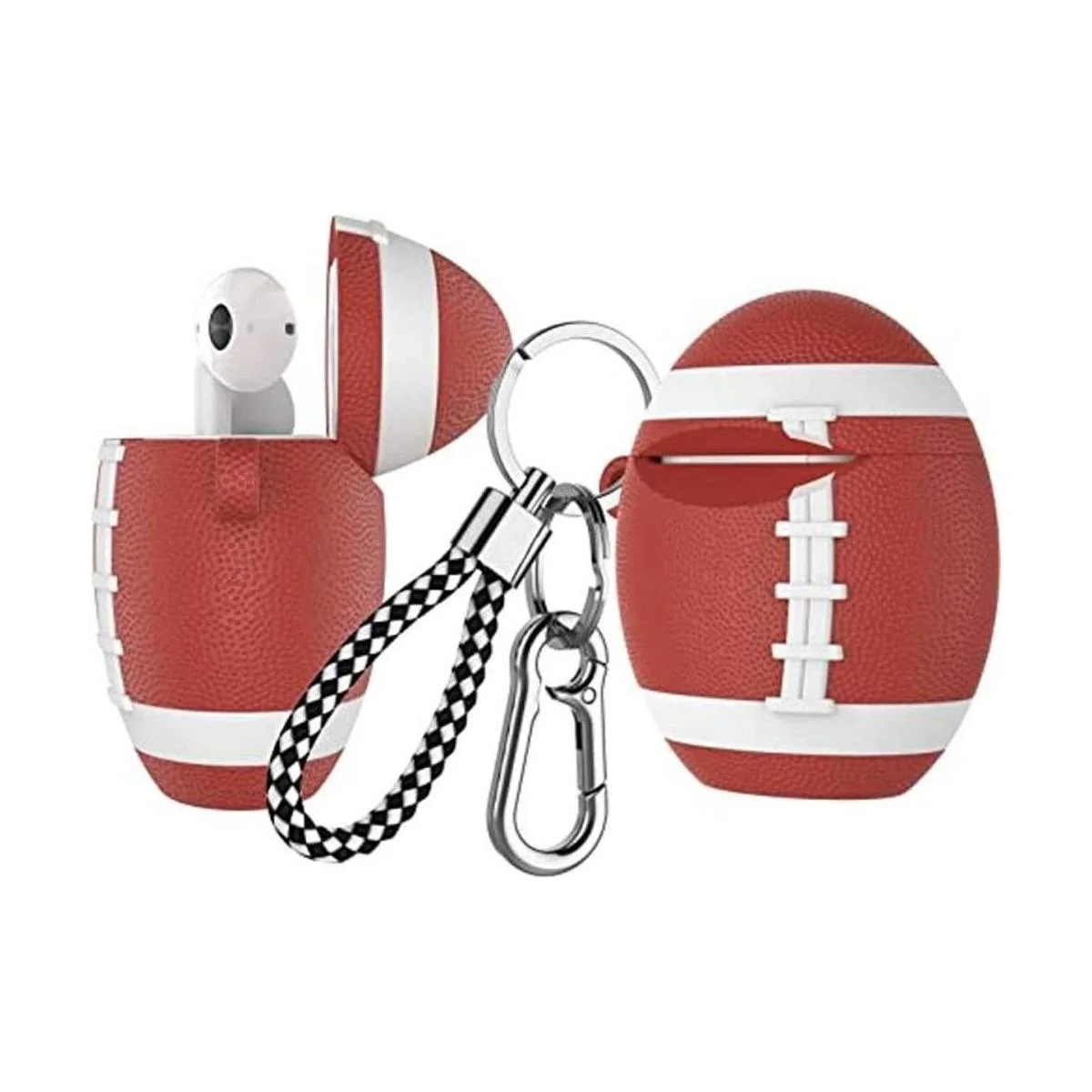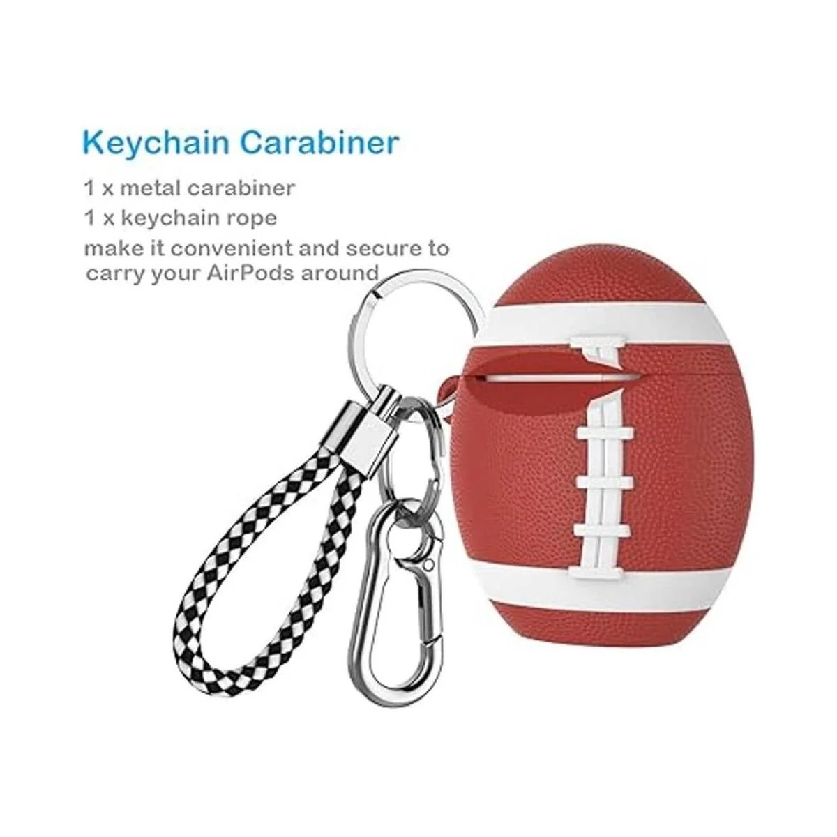 Tekcoo Funda para AirPods, Absorción de impactos Funda de accesorios compatible con Apple Airpods 1 y AirPods 2, bonita funda protectora suave de PVC con patrón de goma de silicona y cordón para llavero Fútbol