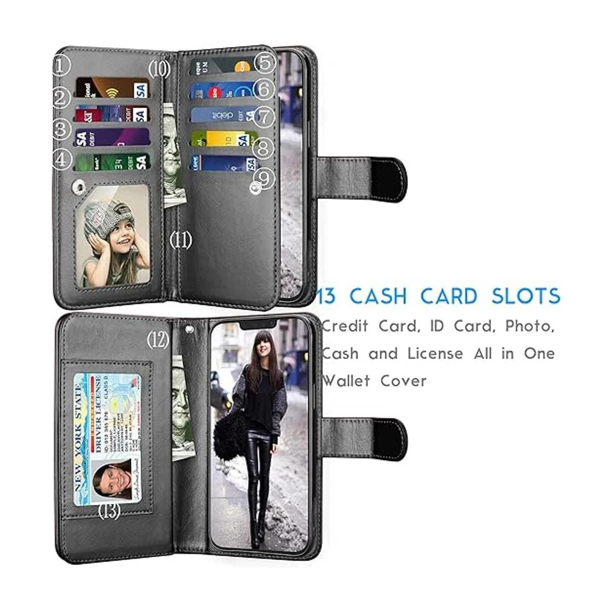 Funda para iPhone 13, esta funda también es multifuncional. Bolsillos y funda integrados para tarjetas para guardar cómodamente tu identificación, licencia, fotos, dinero en efectivo y tarjetas de crédito.