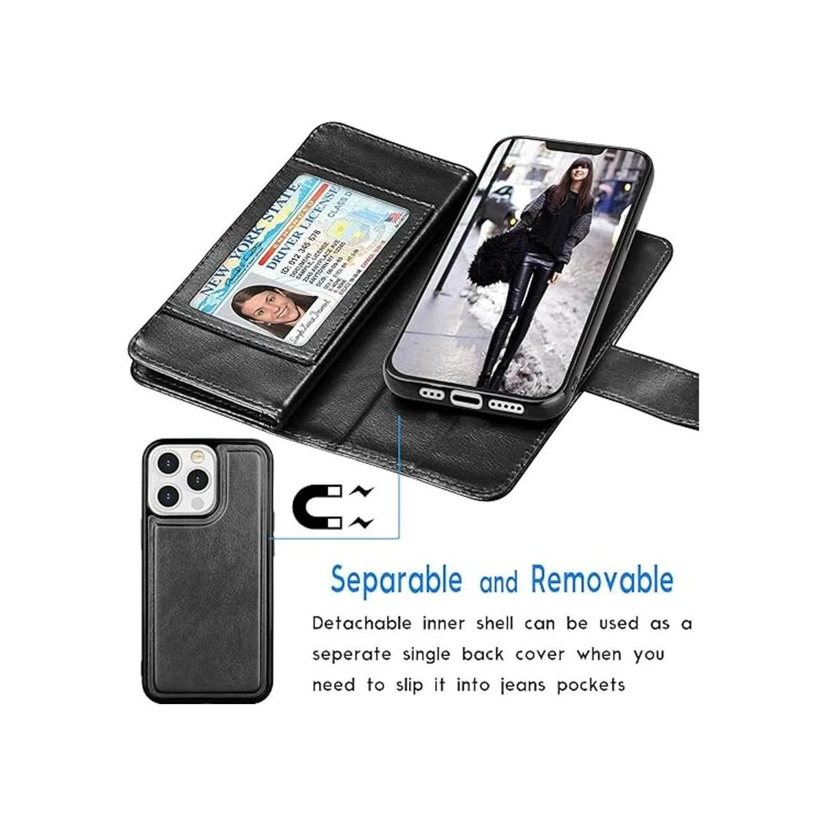 Compatible con iPhone 13 Pro, proporciona protección contra el desgaste diario, arañazos, marcas y rasguños. La funda magnética rígida desmontable te permite llevar el teléfono sin la cartera conectada a tu conveniencia la parte rígida de la funda se puede fijar en el refrigerador