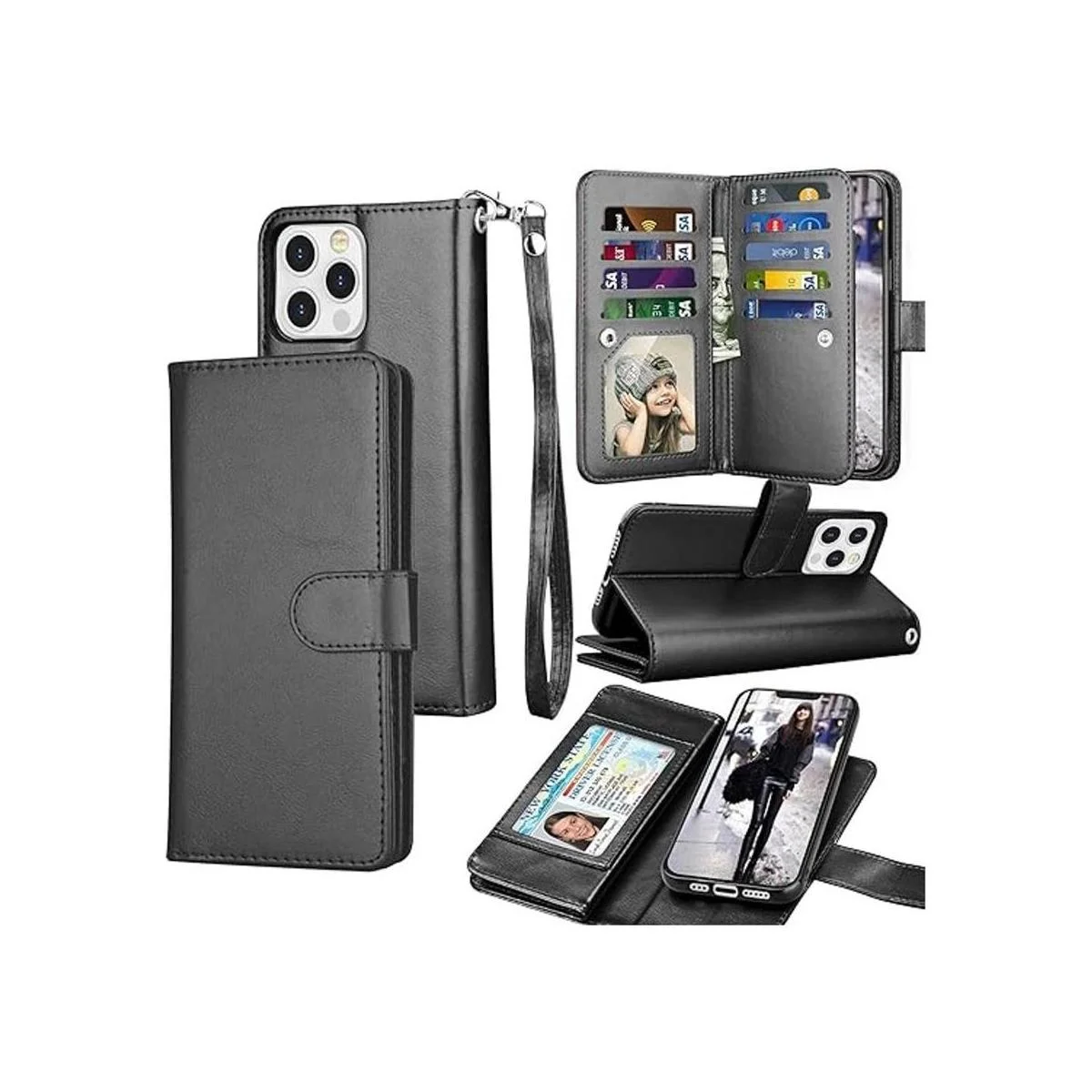 Tekcoo Funda tipo cartera compatible con iPhone 13 Pro 6.1 pulgadas 2021 de lujo, ranuras para tarjetas de crédito, bolsa de transporte, funda de piel sintética con tapa funda rígida magnética desmontable Negro