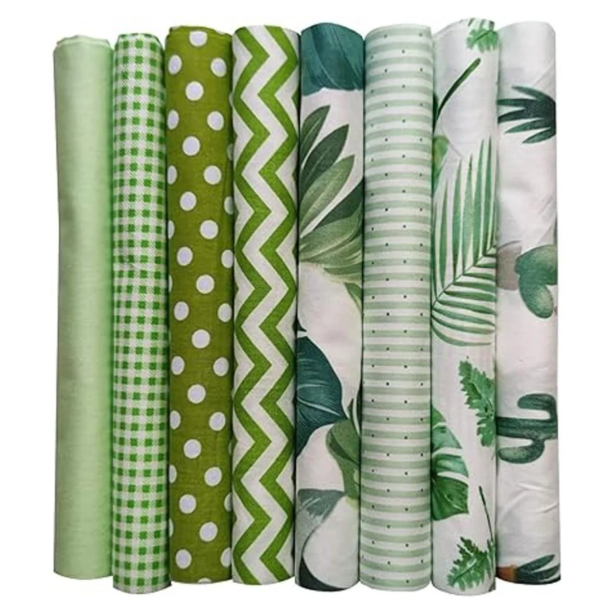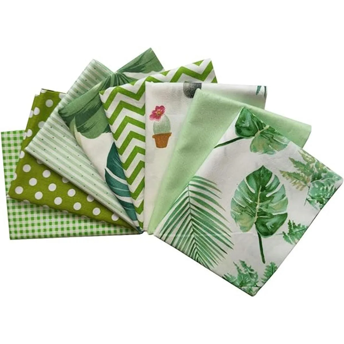 Tela acolchada, 8 piezas, 100 algodón, paquete de tela para manualidades, cuadrados, cuartos de grasa, 18 x 22 pulgadas, multicolor para retazos, costura de bricolaje, álbumes de recortes, planta verde