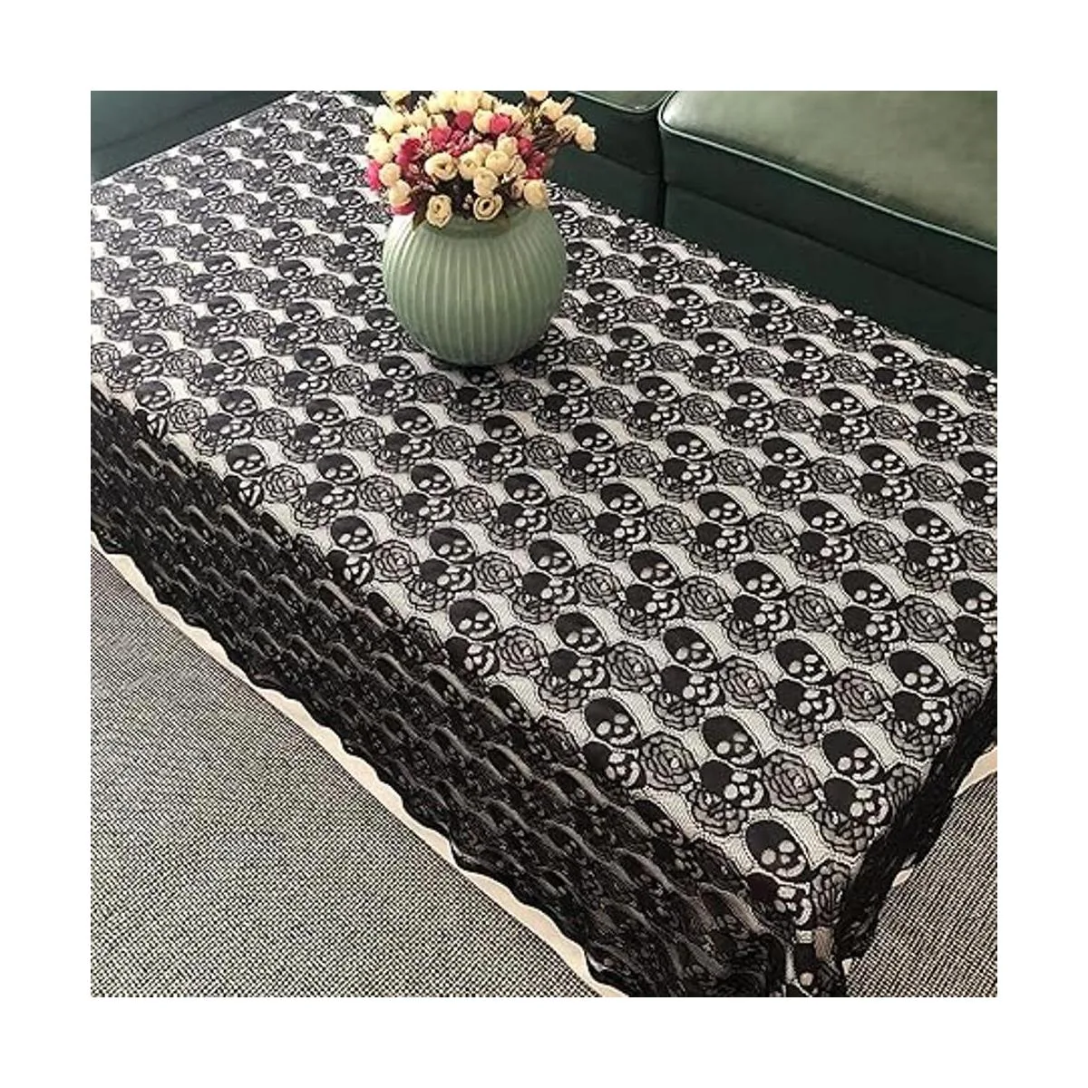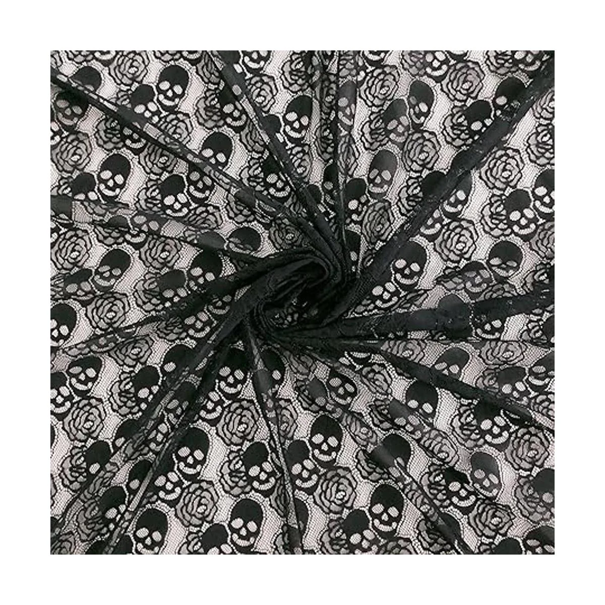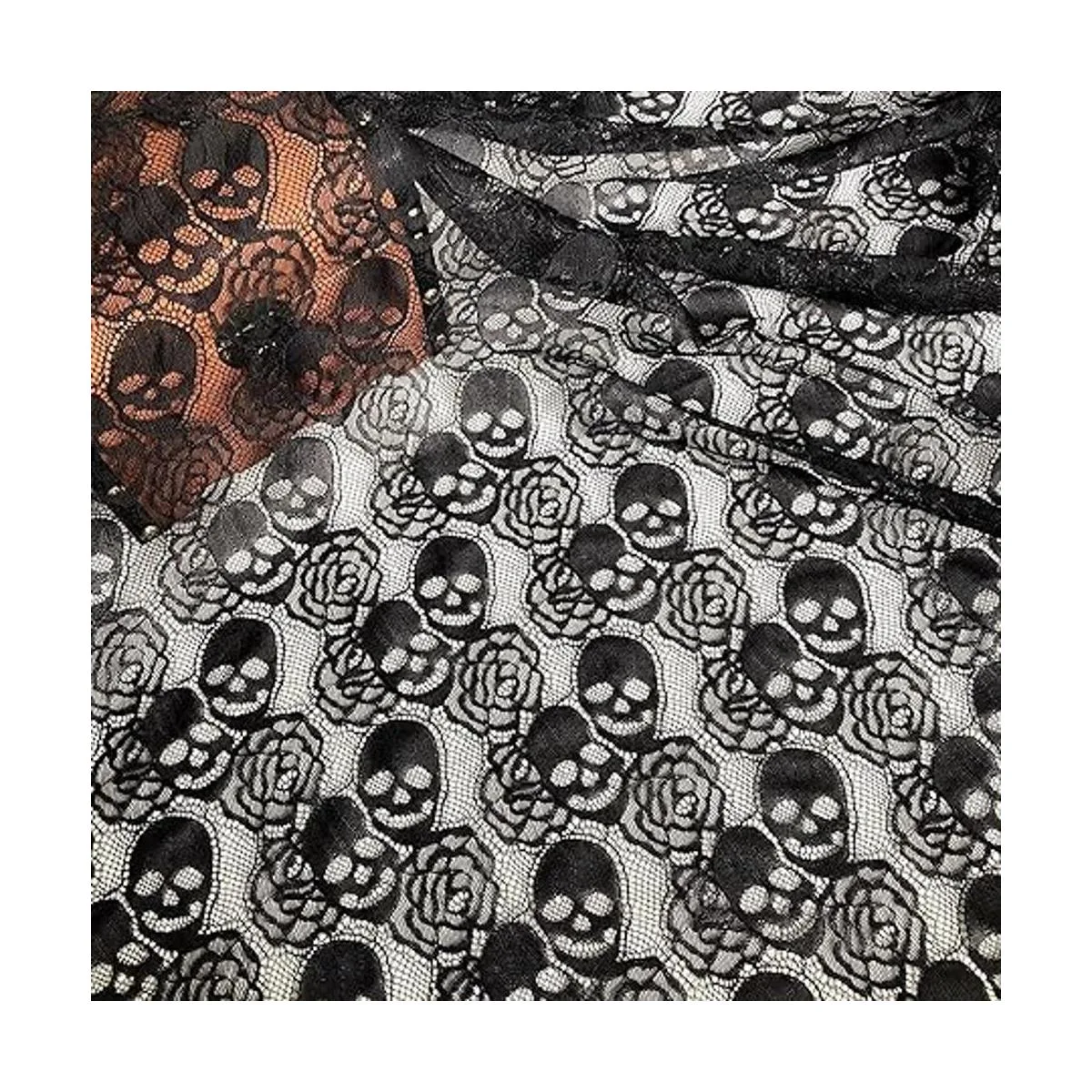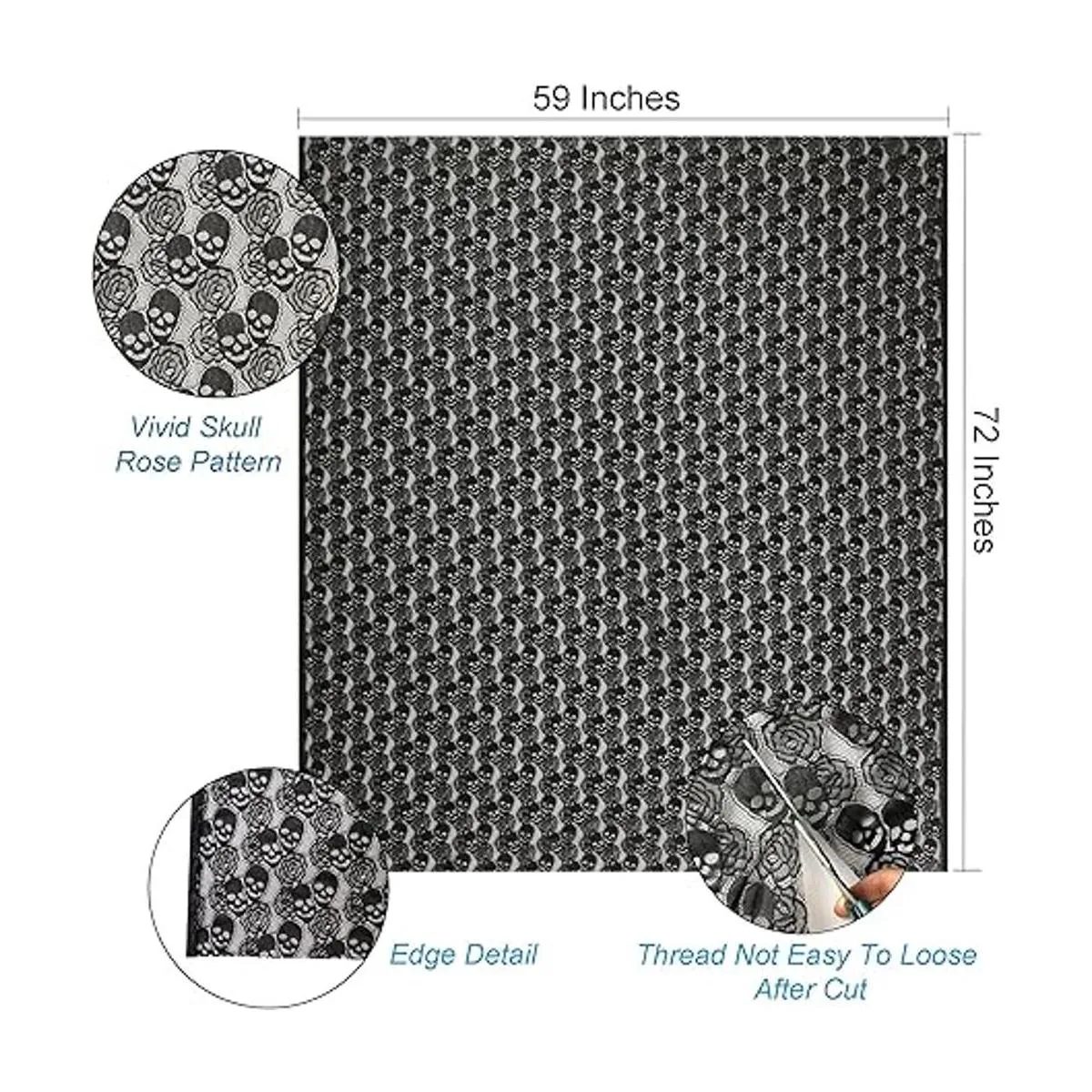 Tela de encaje de calavera negra, 59 x 72 pulgadas, encaje de tela no elástica, tela de encaje floral para manteles, cortinas, superposición de fiesta, decoración del hogar DIY