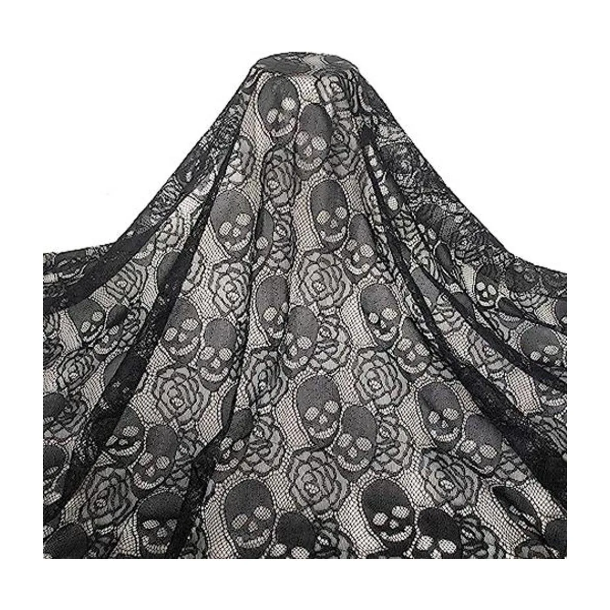 El paquete incluye: 1 tela de encaje de calavera negra, 59 x 72 pulgadas