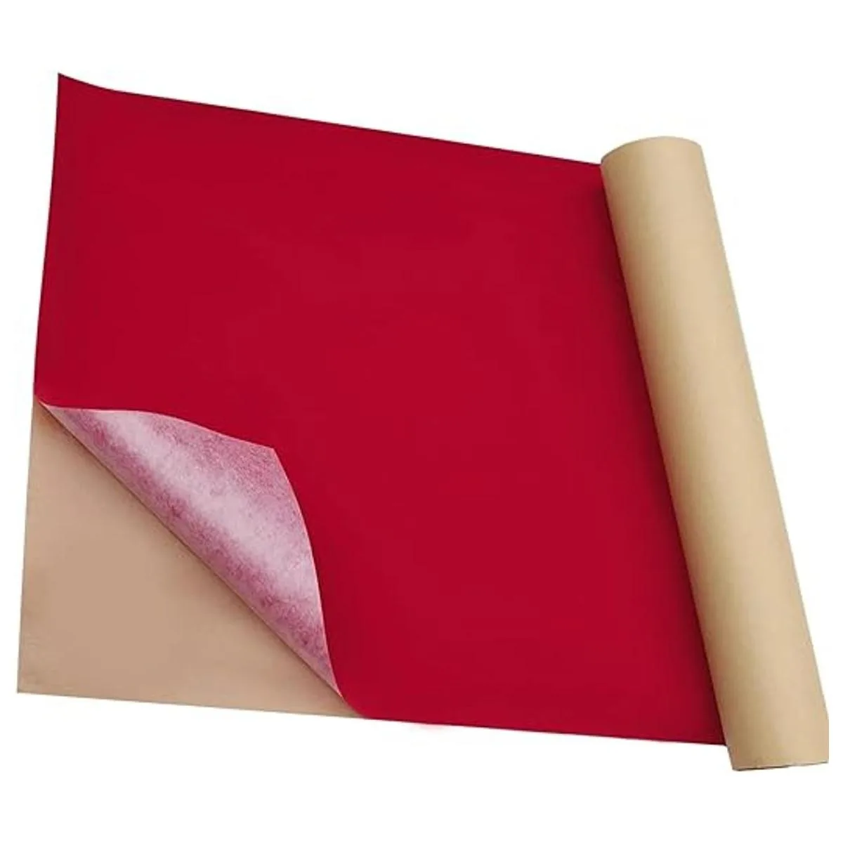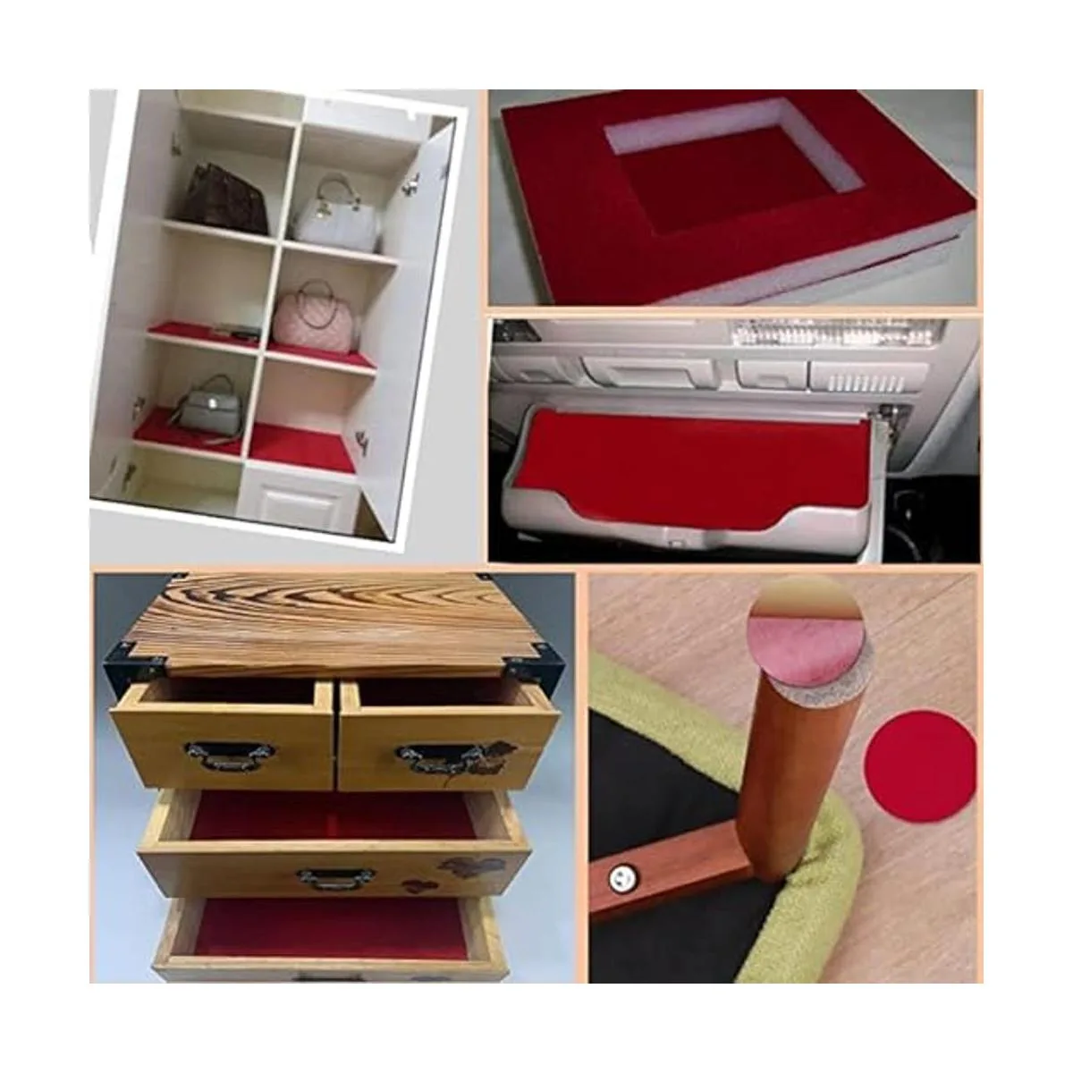 Tela de fieltro autoadhesiva suave, forro de terciopelo suave para cajones, forro de fieltro para joyero, tela de terciopelo para arte y manualidades 17.7 x 157.5 pulgadas, rojo