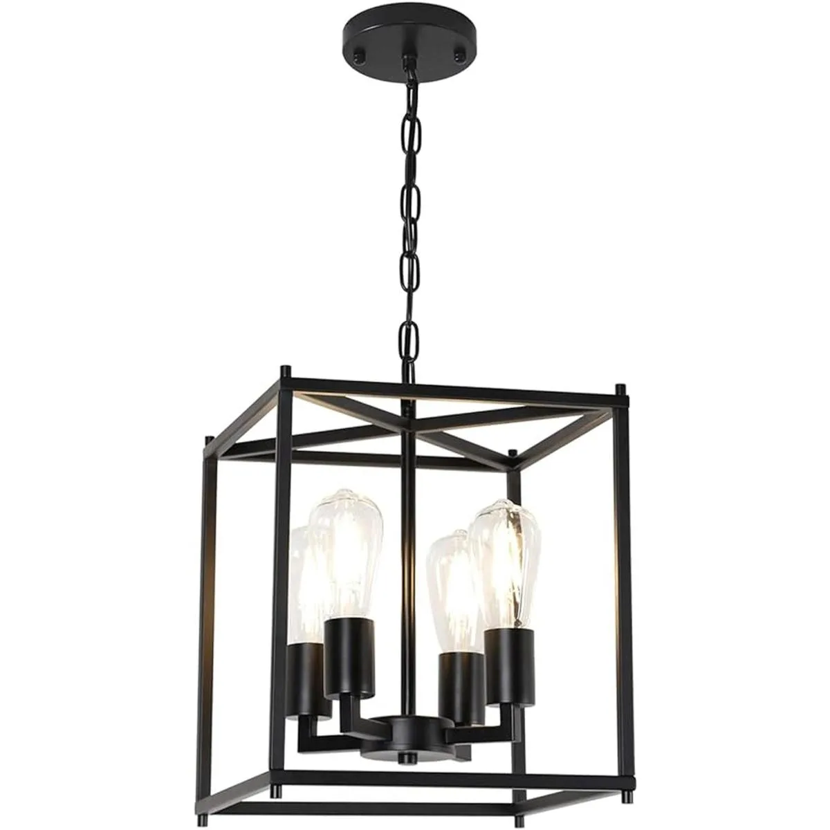 TELAFLY Lámpara de araña de 4 luces, estilo rústico industrial, con jaula de metal negro colgante para iluminación E26 para cocina, isla comedor, vestíbulo, entrada