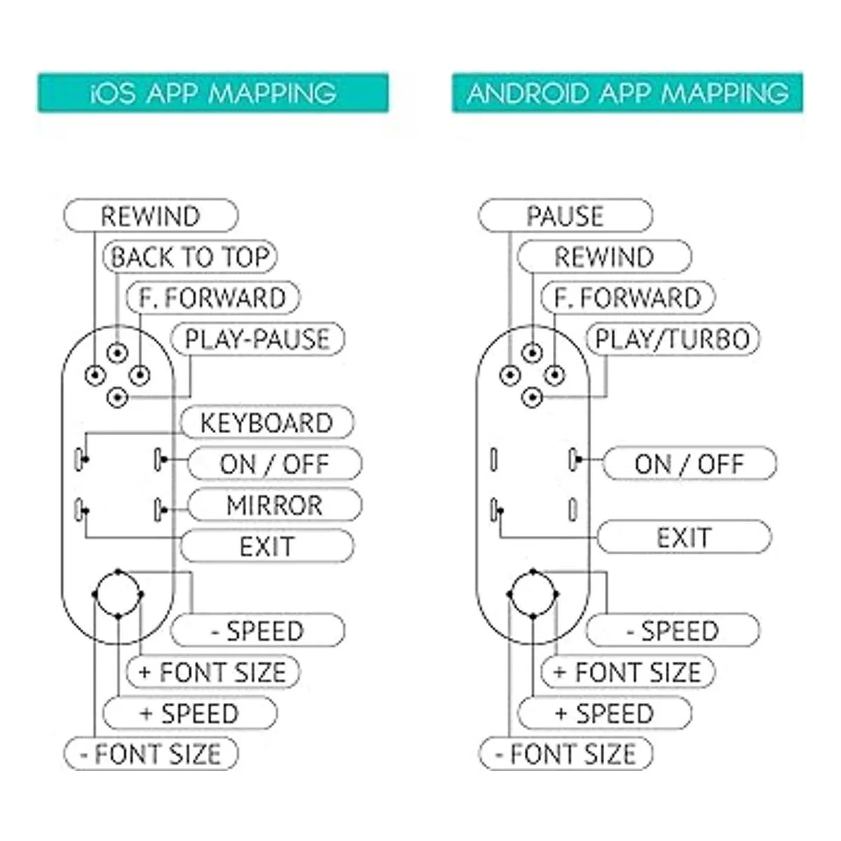Enciende y listo: después del primer uso, la reparación Bluetooth es automática e inmediata. La aplicación teleprompter incluida te permite controlar el desplazamiento y todas las funciones principales de la aplicación en tu presentación, incluyendo velocidad, tamaño de fuente, pausa de reproducción, retroceso rápido y modo espejo entre otras funciones. También acepta algunas aplicaciones de terceros algunas de ellas requerirán una configuración rápida y fácil antes del primer uso.