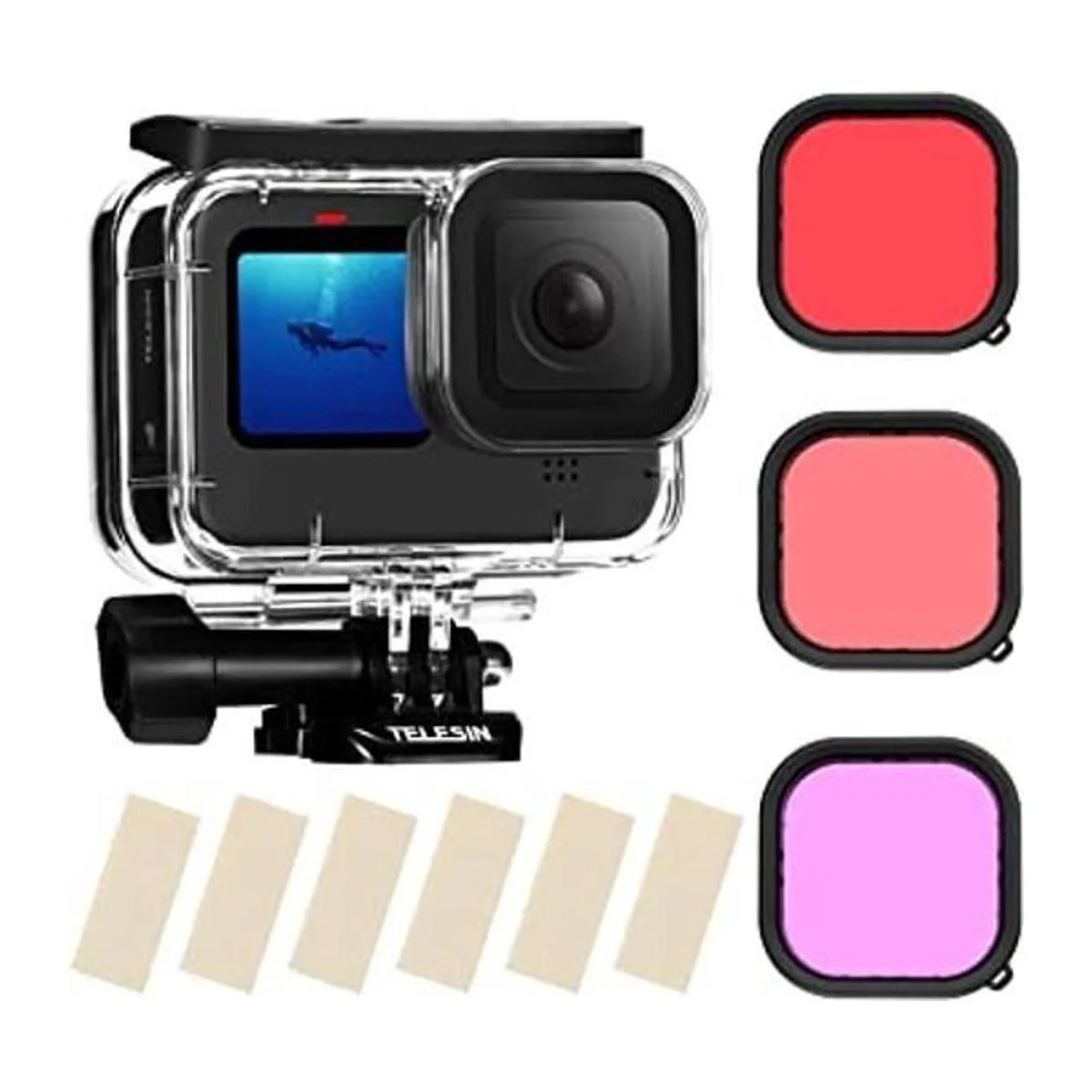 Incluye 3 filtros de buceo: el kit impermeable TELESIN viene con 3 filtros de buceo, filtro rojo, filtro de luz y filtro magenta. Estos filtros se utilizan principalmente para la corrección de color de menos de 5 a 82.0 ft de agua.