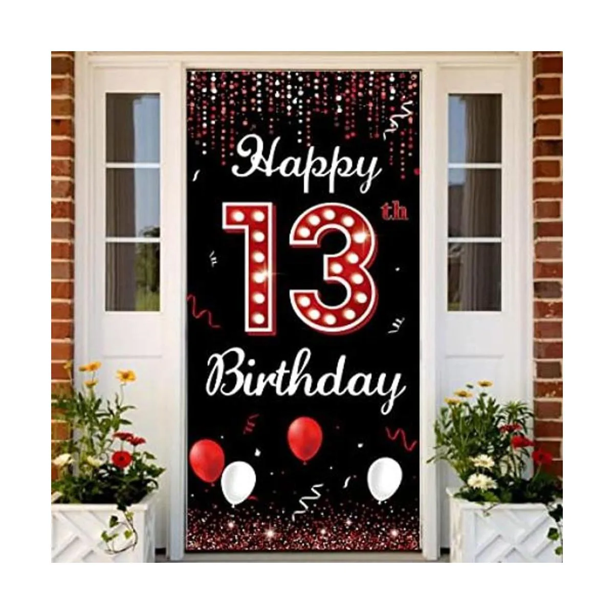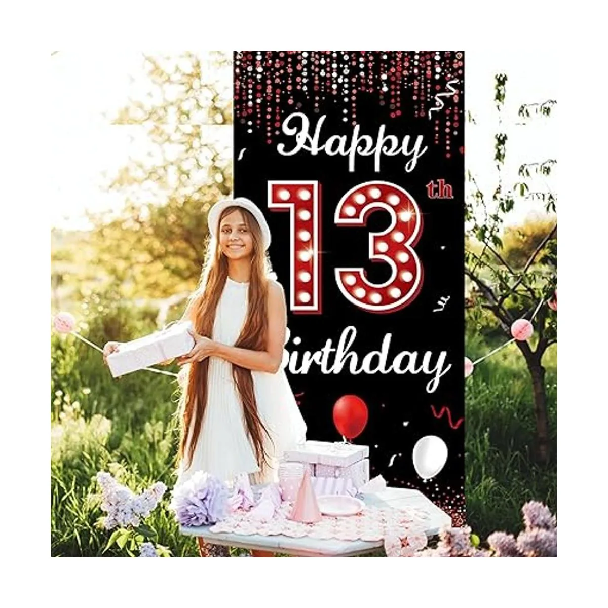 Telón de fondo para puerta de cumpleaños número 13, decoraciones de cumpleaños número 13 para niñas, accesorios de fotos de fiesta de cumpleaños rojo y negro de 13 años, letrero de patio de trece cumpleaños para interiores al aire libre, tela resistente Vicycaty