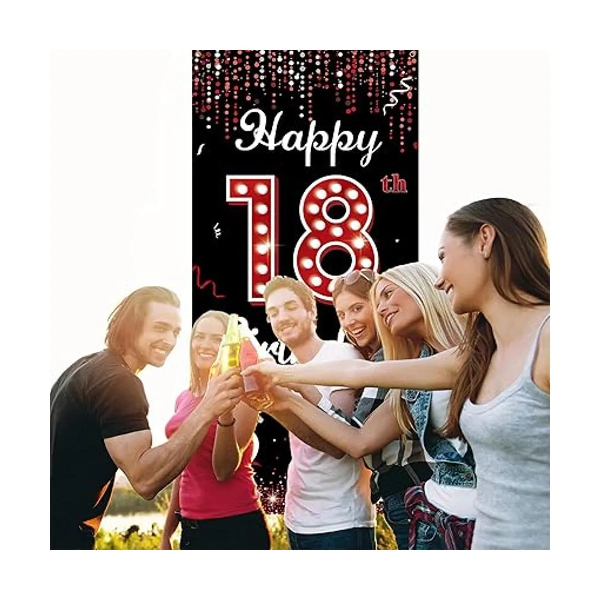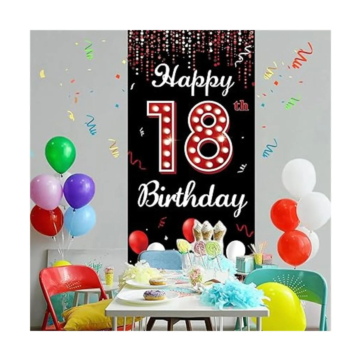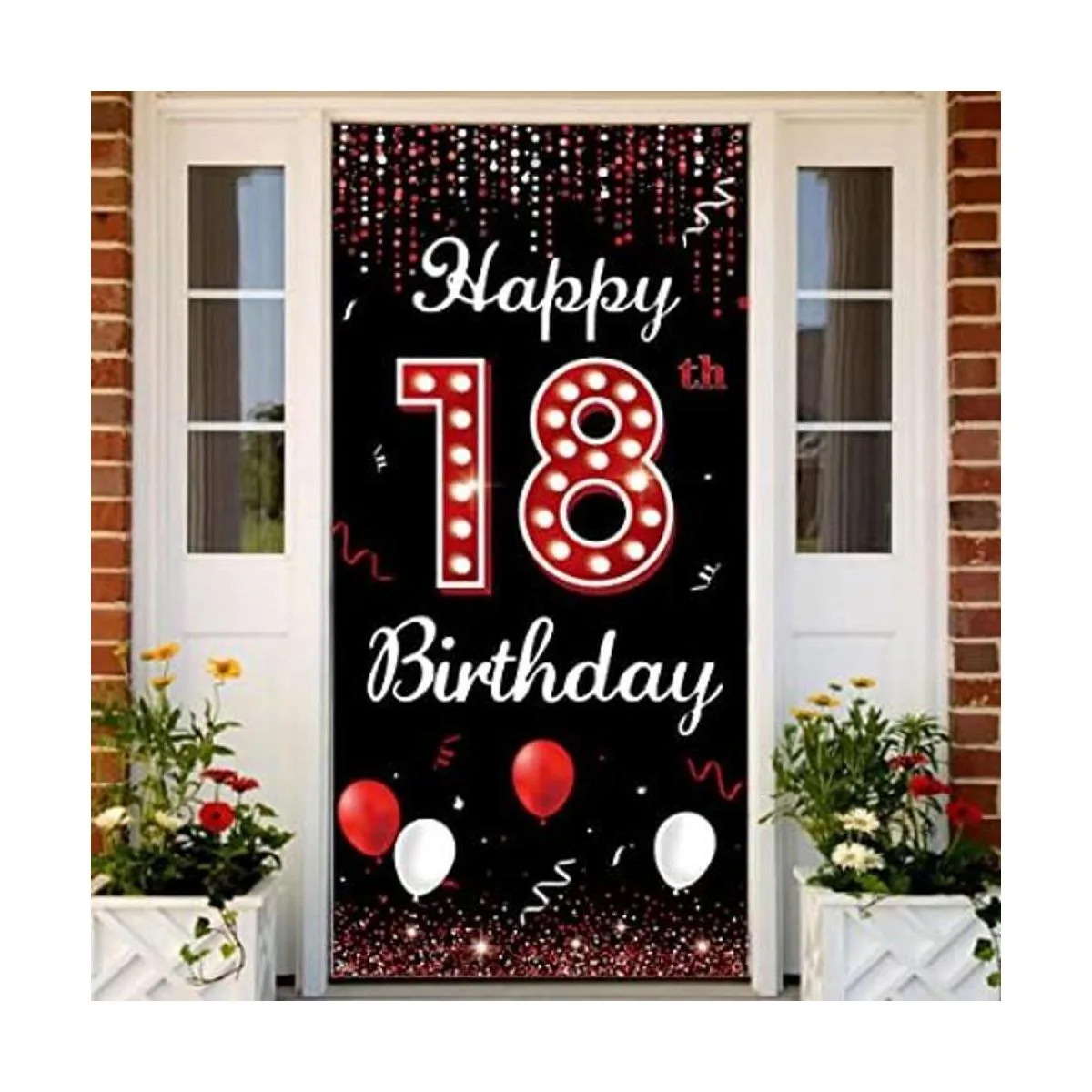 Una exquisita pancarta de puerta de fiesta de 18 cumpleaños: vívida y chic, una excelente combinación de color rojo, negro y blanco que añade diseños llamativos que hace que la fiesta de 18 cumpleaños sea divertida y dulce. Regalo perfecto para la fiesta de cumpleaños 18 para niñas.