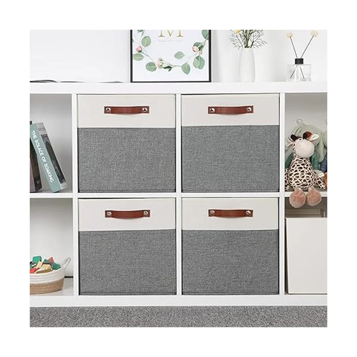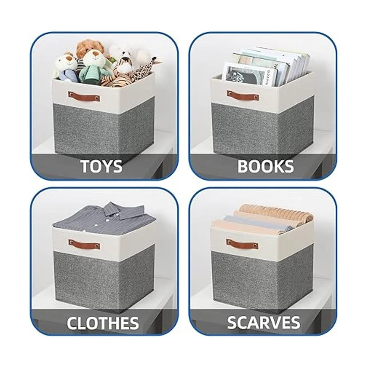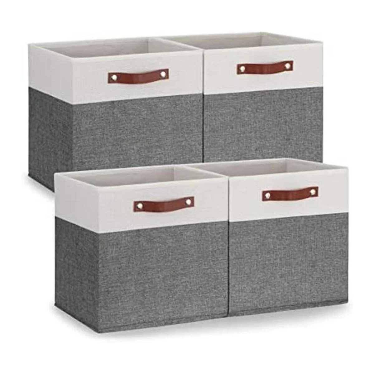 Temary Cubos de almacenamiento de 13 x 13 pulgadas, paquete de 4 cubos de almacenamiento grandes con asas de cuero, cajas de almacenamiento decorativas para organizar armario, ropa, juguetes, cestas de tela plegables para estantes