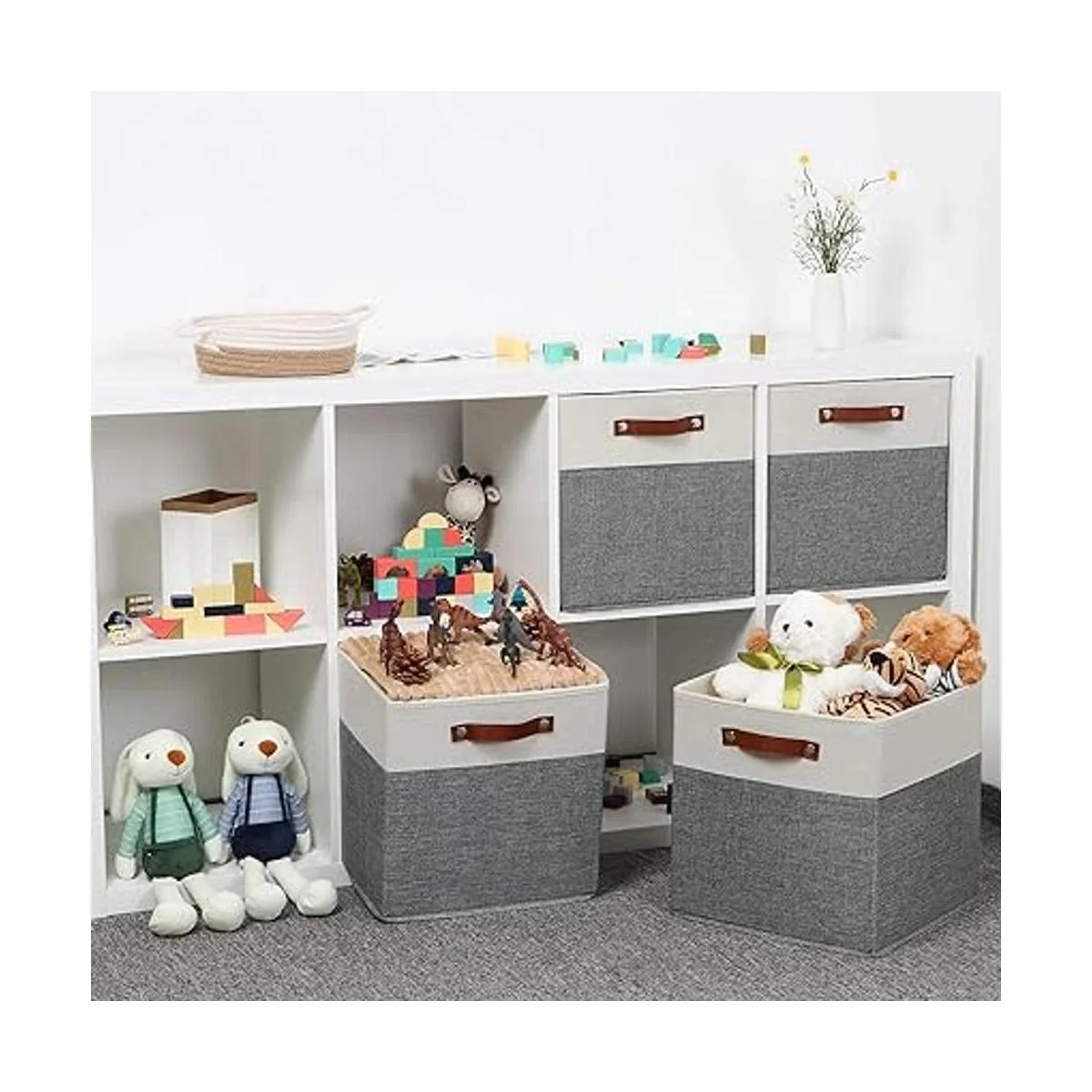 Contenedores multifuncionales: estos cubos de almacenamiento para organizar y reducir el desorden del hogar u oficina. El tamaño de este contenedor organizador de armario hace que sea ideal para almacenar cosas que van desde juguetes, pañales para niños, toallas, libros/revistas hasta incluso pequeños discos o álbumes. Es un buen ayudante de almacenamiento para toda tu familia