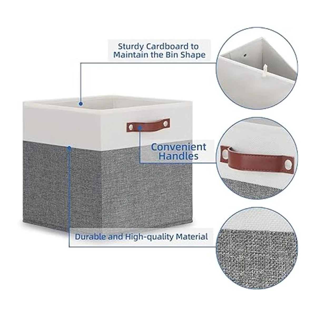 2 asas de cuero resistentes: este cubo de almacenamiento de tela viene con 2 asas de piel sintética fáciles de agarrar en ambos lados, por lo que es conveniente sacar las cajas de almacenamiento de cubos de los estantes, para un fácil acceso y transporte