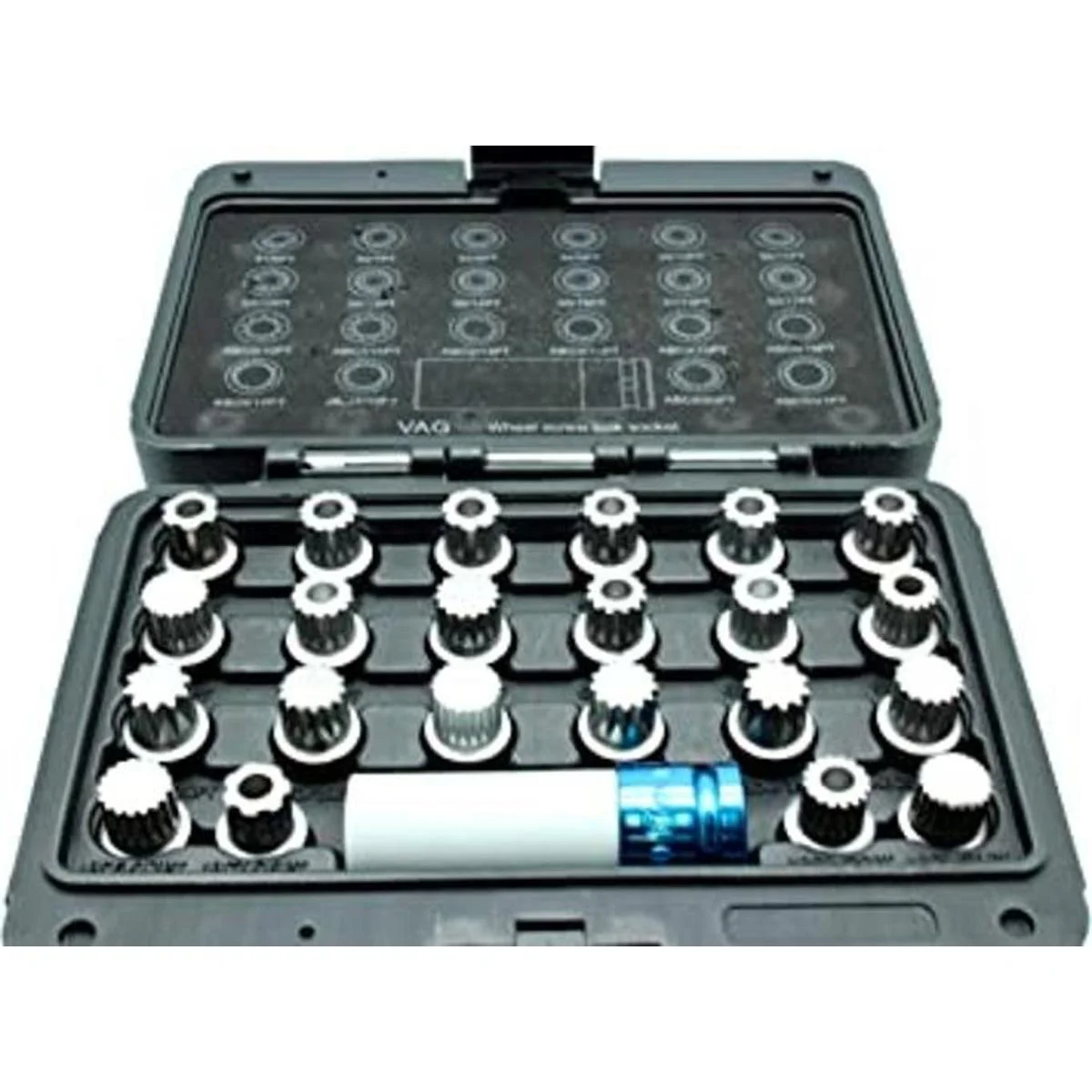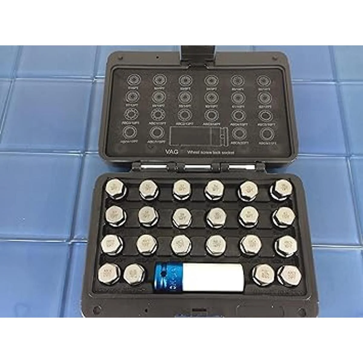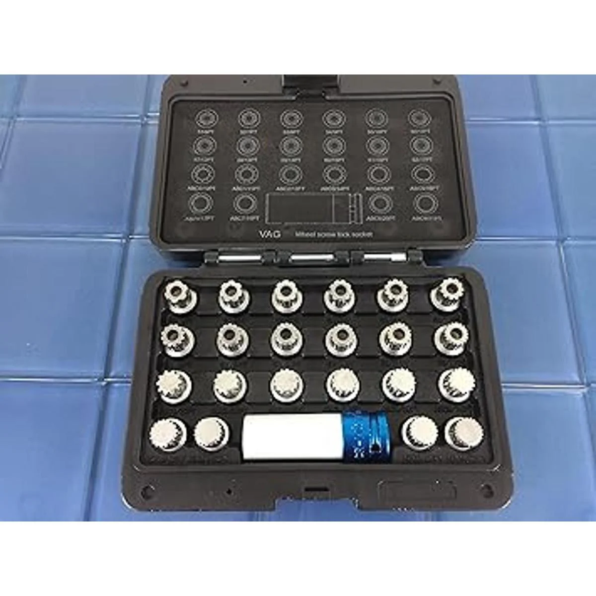 TEMO Juego de 23 llaves antirrobo de tuercas de tuercas antirrobo, compatible con Vw Audi con adaptador de enchufe de 12 pulgadas
