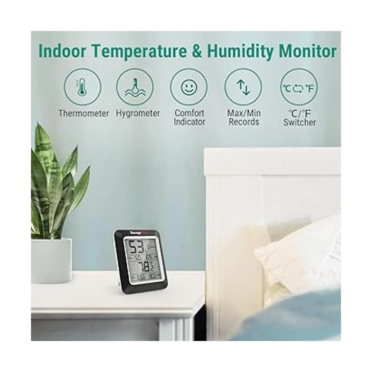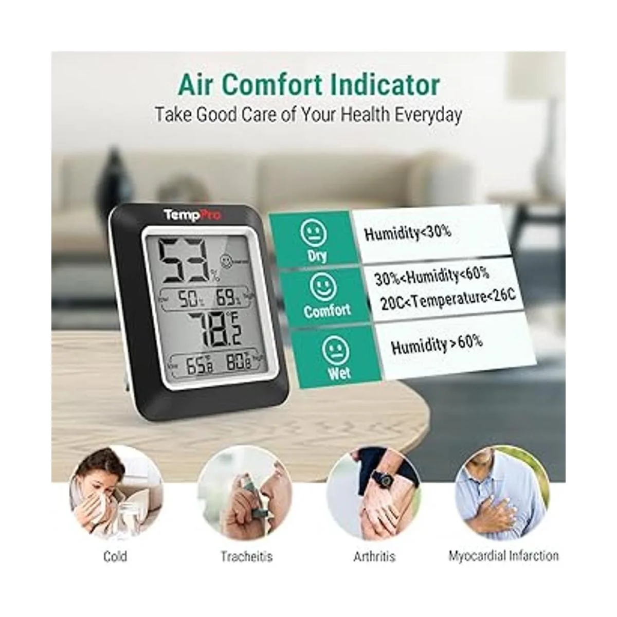 TempPro Higrómetro A502 Sensor de humedad con indicador de comodidad del aire, paquete de 2 medidores de humedad, termómetros de habitación para el hogar, sótano, sensor de temperatura de invernadero, color negro