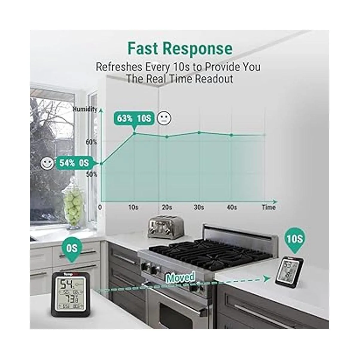 Alta precisión: el monitor de humedad TempPro integrado con sensor de temperatura inteligente y la temperatura es precisa a 23 RH y 1F, cada 10 segundos te da los datos más precisos