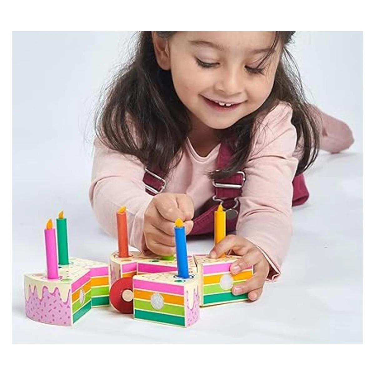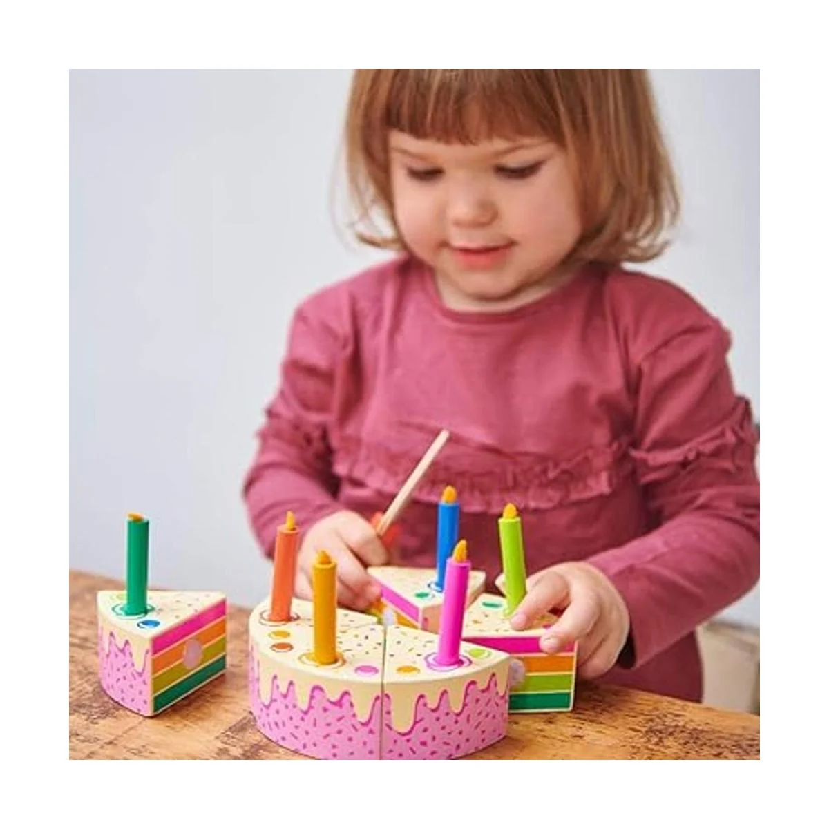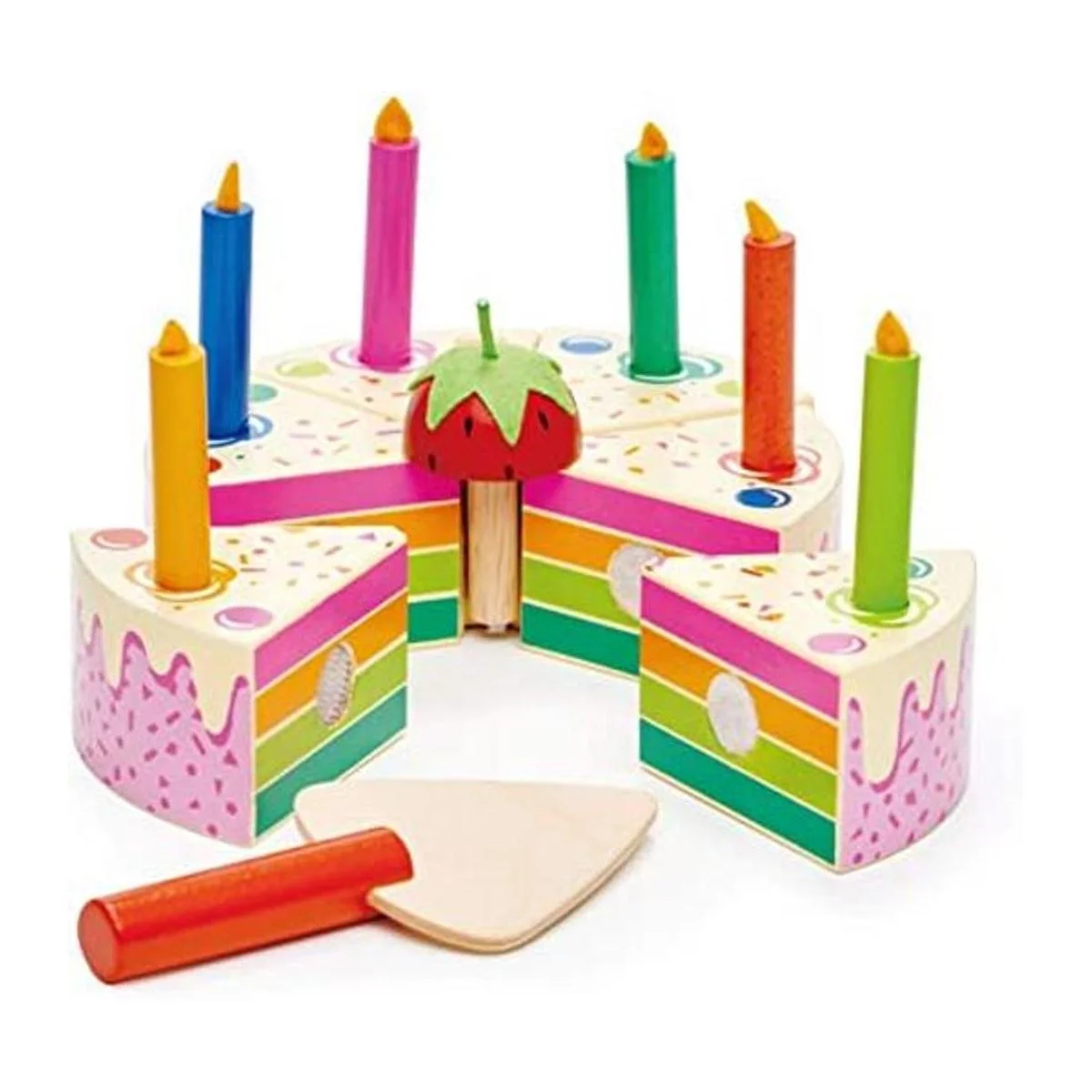 Tender Leaf Toys Juego de comida para cumpleaños, desarrolla habilidades sociales y juegos imaginativos para niños más de 3 años pastel de cumpleaños de arco iris