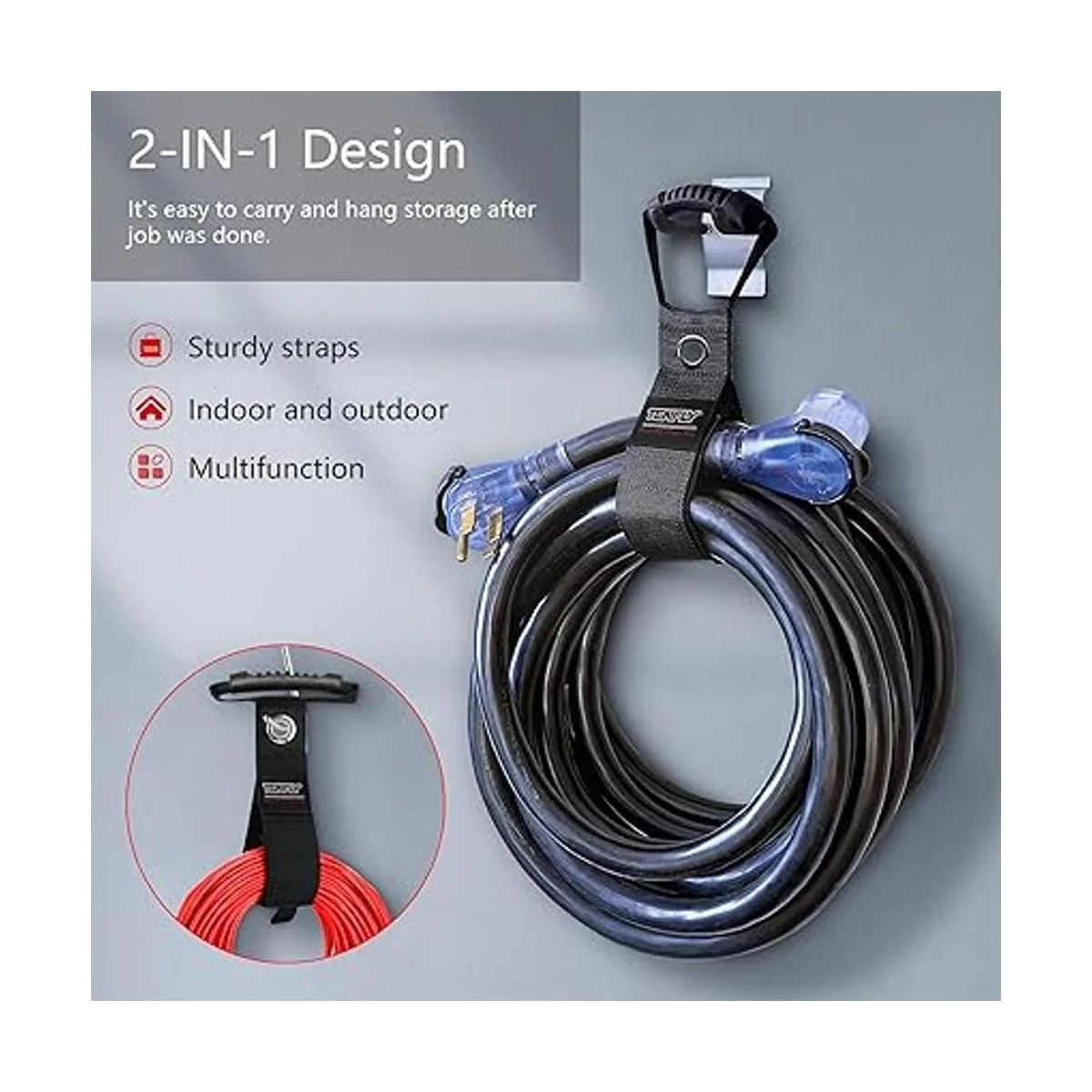 Amplia gama de usos: utiliza correas de cable fáciles de colgar cables de extensión interiores o exteriores, cables y cables de gran electrodoméstico, cables de red y cables de generador, cables de alimentación eléctrica y herramientas con cable, mangueras de lavado y mangueras de jardín y piscina, mangueras de aire y vacío y otras mangueras grandes o cuerdas.