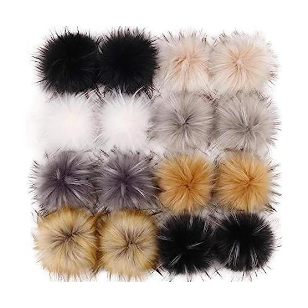 Tengsen 16 pompones de piel sintética de 4 pulgadas, esponjosos para sombreros, bufandas, guantes, bolsas, accesorios 8 colores, 2 unidades por color