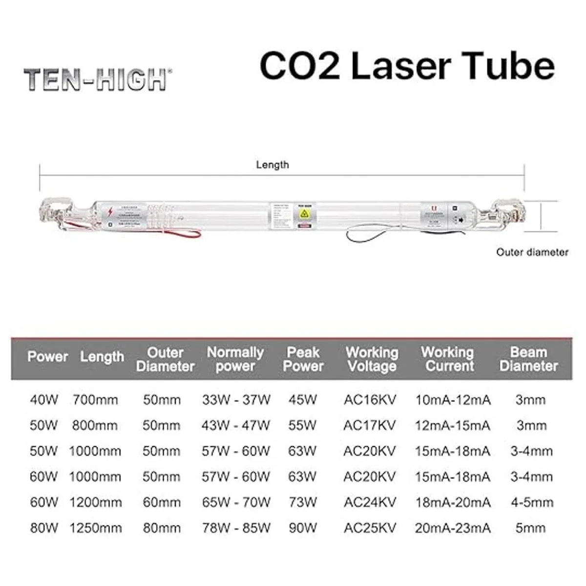 TENHIGH Tubo láser de CO2 de 40 W, 27.559 in, D50 mm, cables preconectados con revestimiento, para cortador láser, máquina de corte de grabado láser