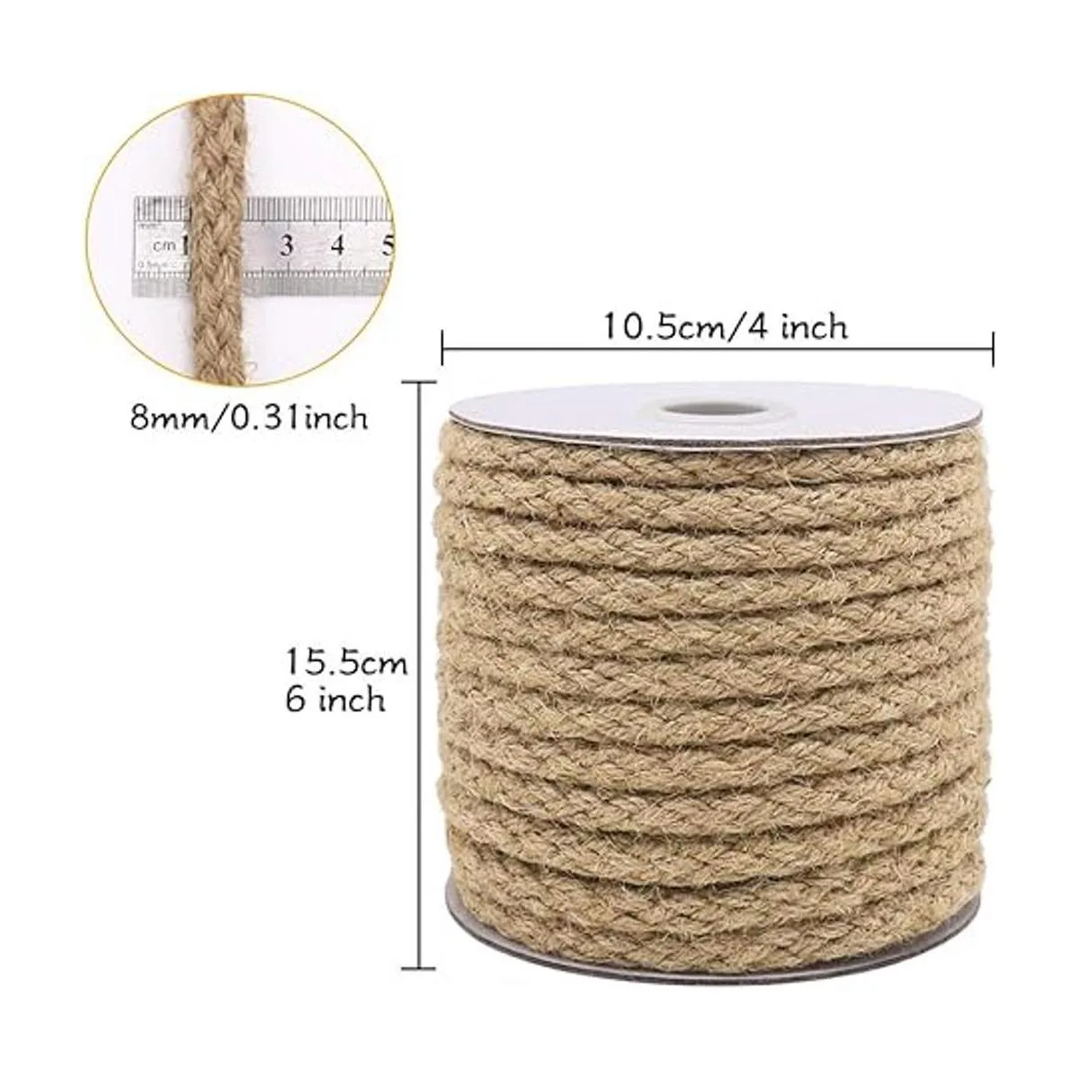Tenn Well Cuerda de yute de 0.315 in, cuerda de yute trenzada de 52 pies para manualidades, arañazos de gatos, jardinería y decoración