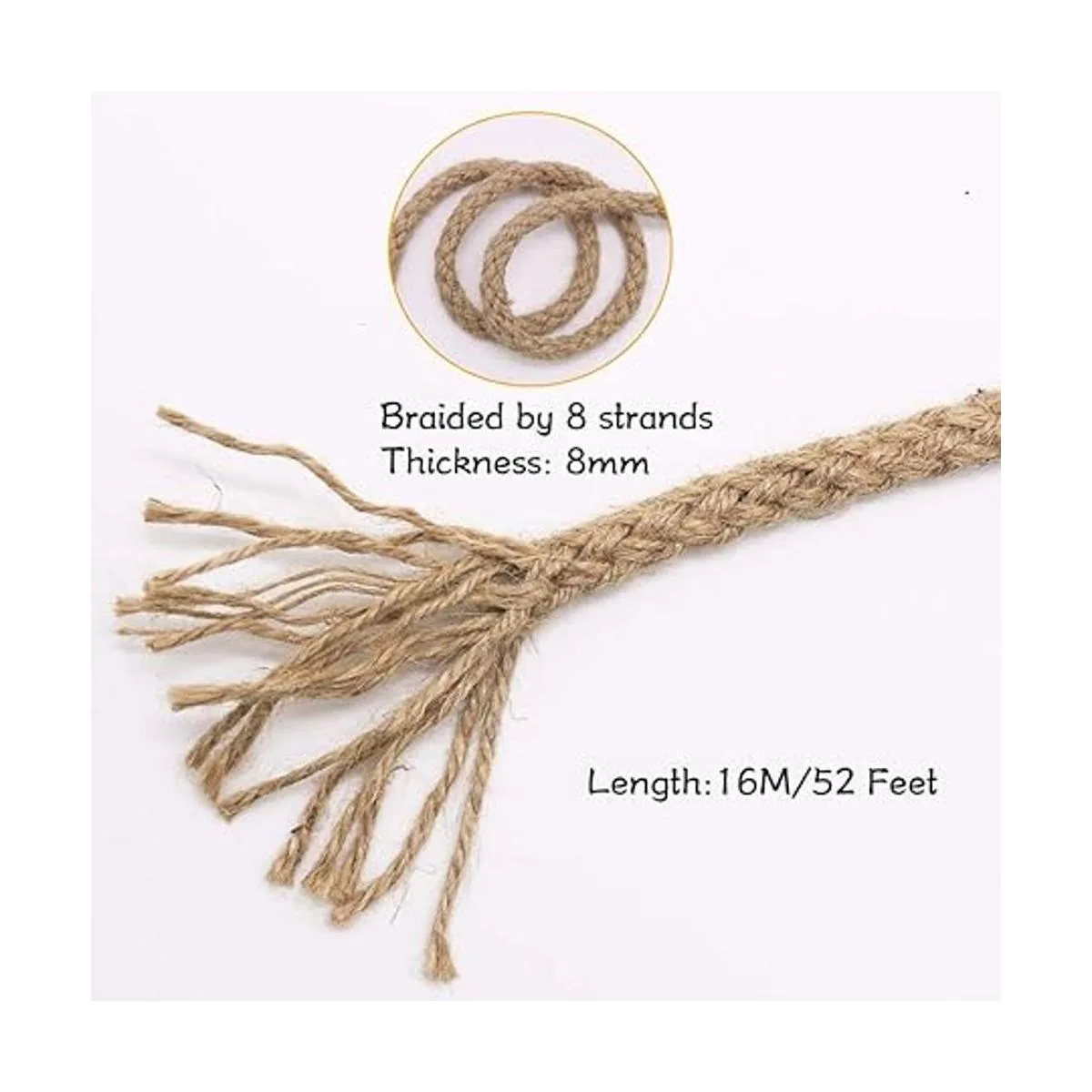 Nuevo método de tejido: esta cuerda de yute natural utiliza técnica de trenzado. En comparación con la cuerda trenzada, es más duradera y más fuerte