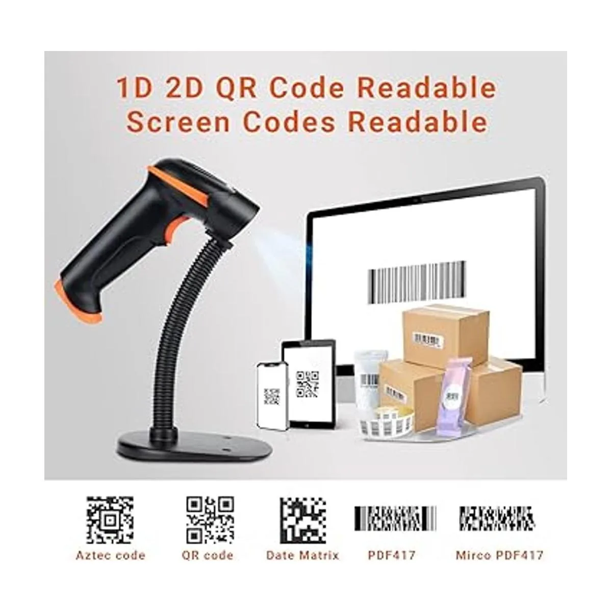 Tera Escáner de código de barras inalámbrico y con cable con indicador de nivel de batería 1D 2D QR, lector de códigos de barras impreso digital con soporte, escáner portátil de código de barras compacto Plug and Play Modelo D5100