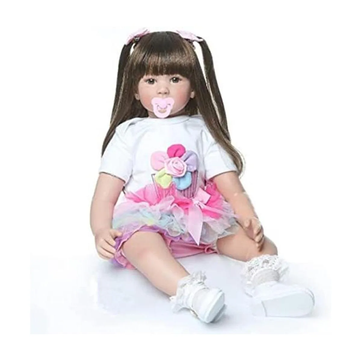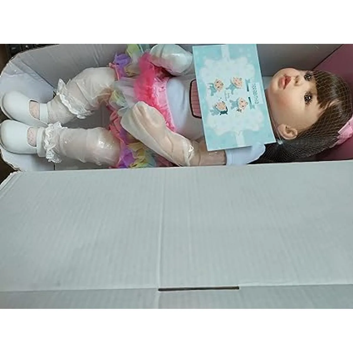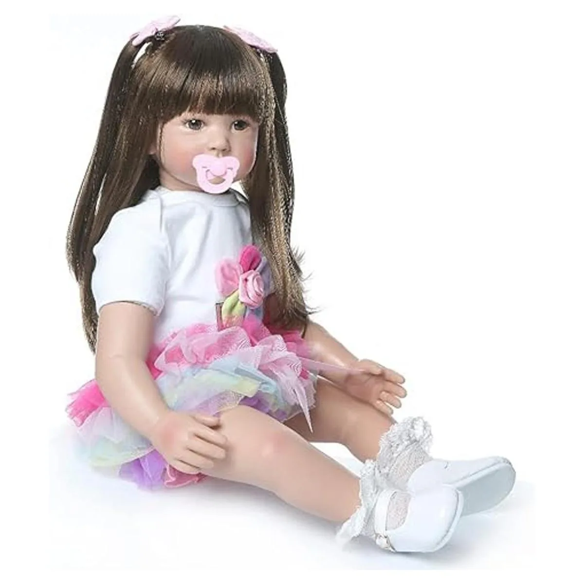 TERABITHIA 24 pulgadas 23.6 in de vinilo de silicona de tamaño grande, muñeca de princesa recién nacida, vestido de arco iris de tela de peluche, muñecas recién nacidas que se ven realistas, regalo de cumpleaños de Navidad