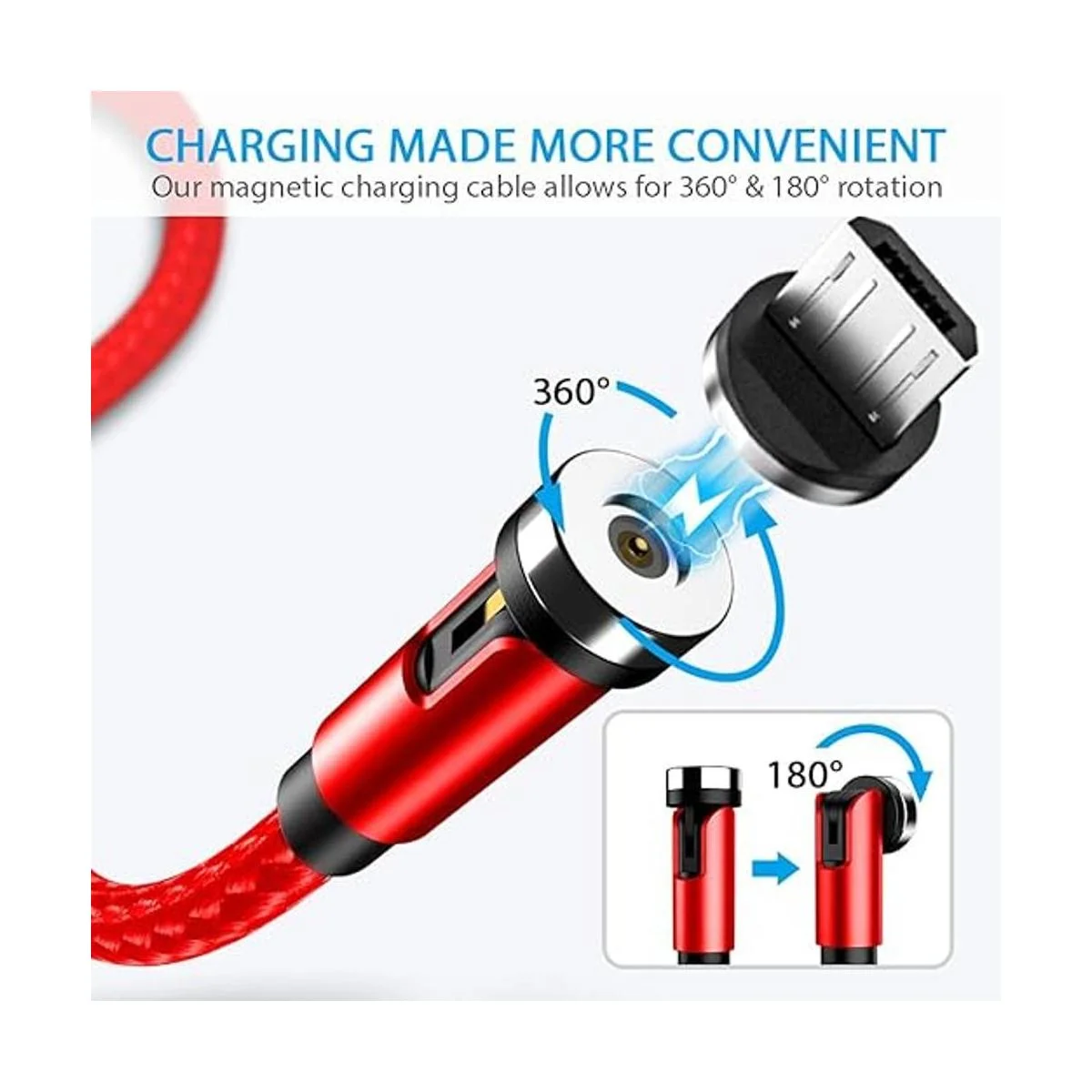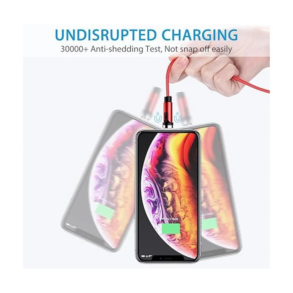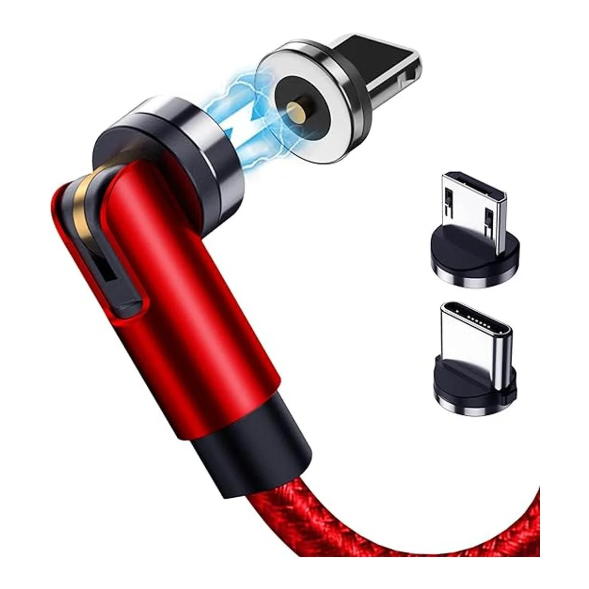 Terasako Cable de carga magnético 336610 pies Cable de carga magnético giratorio de 540 con luz LED, conector de ángulo de 90, cables trenzados de nailon rojo