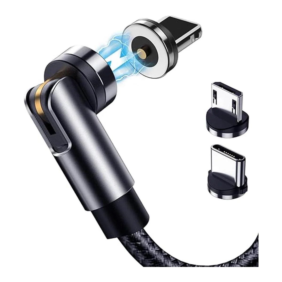 Terasako Paquete de 5 cables de carga magnéticos 336610 pies, cable magnético giratorio de 540 con luz LED, conector de ángulo de 90, cables trenzados de nailon negro