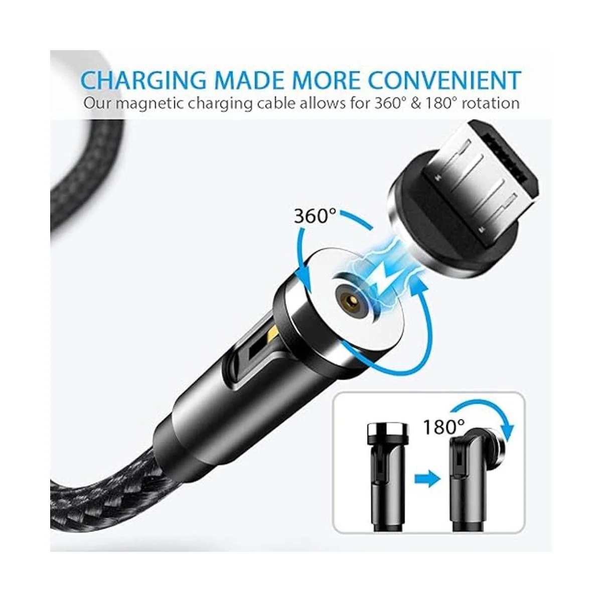Carga más práctica: nuestro cable de carga magnético permite una rotación de 360. Esto elimina el problema de girar los conectores de cable para una carga rápida y con una sola mano.