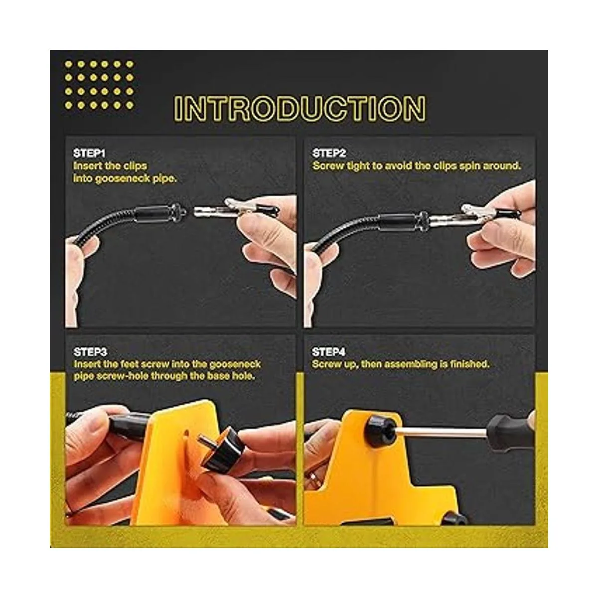 El paquete incluye: 1 base de metal macizo, 1 lupa LED, 4 brazos flexibles con clip de cocodrilo, 5 cubiertas de goma, 1 manual de usuario. Garantía de por vida, servicio de atención al cliente basado en EE. UU., 30 días de satisfacción completa, sin preguntas, periodo de devolución.