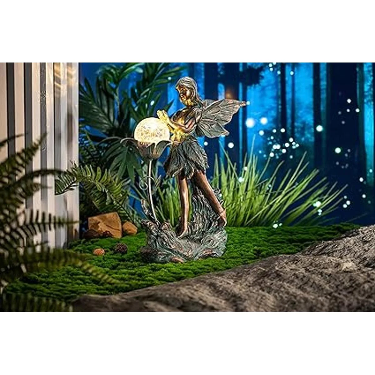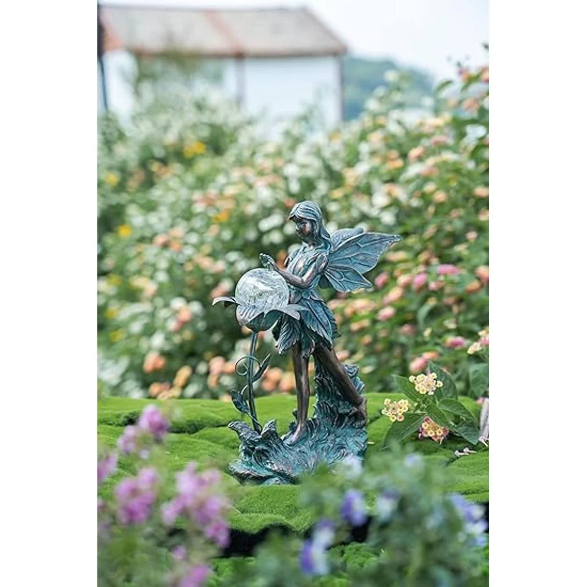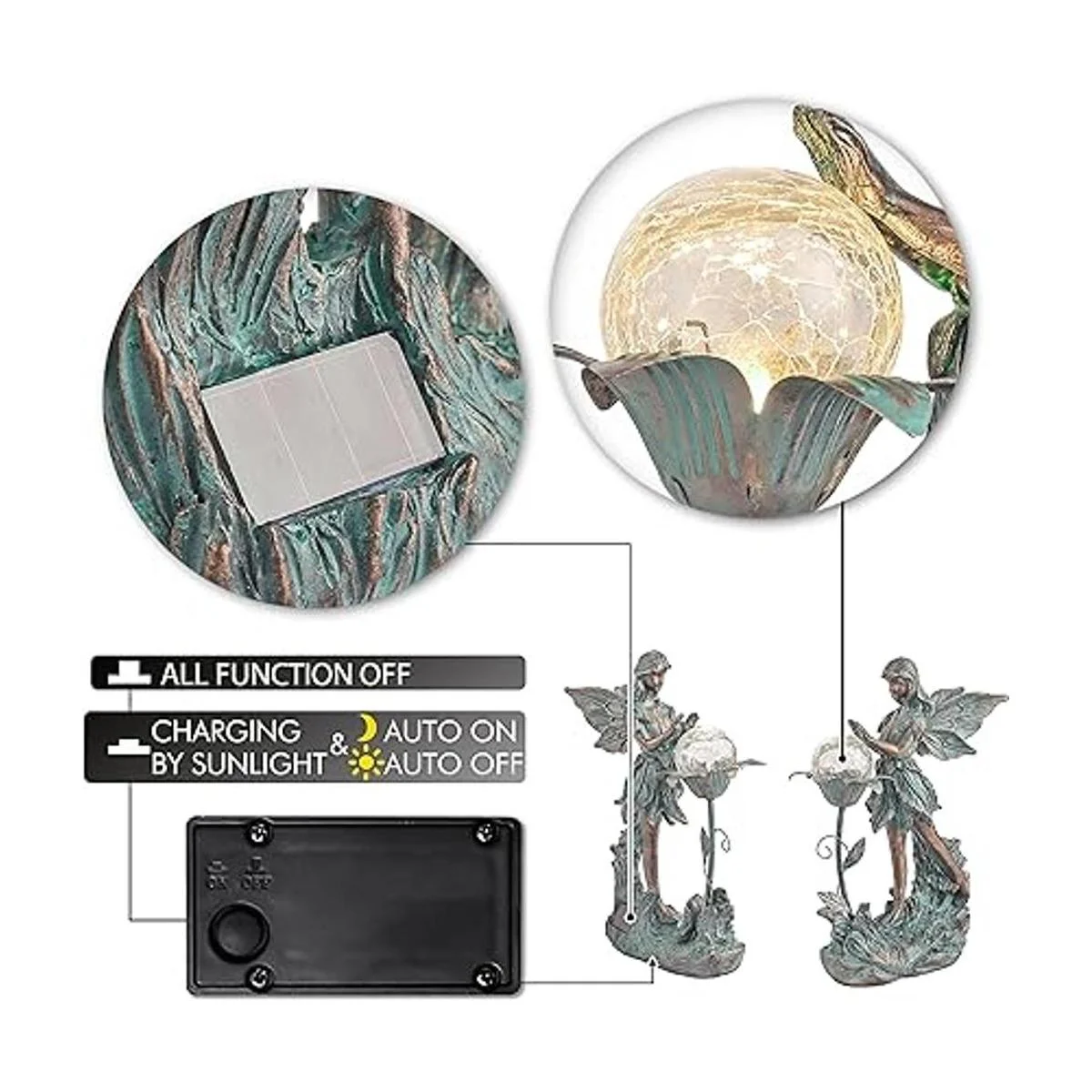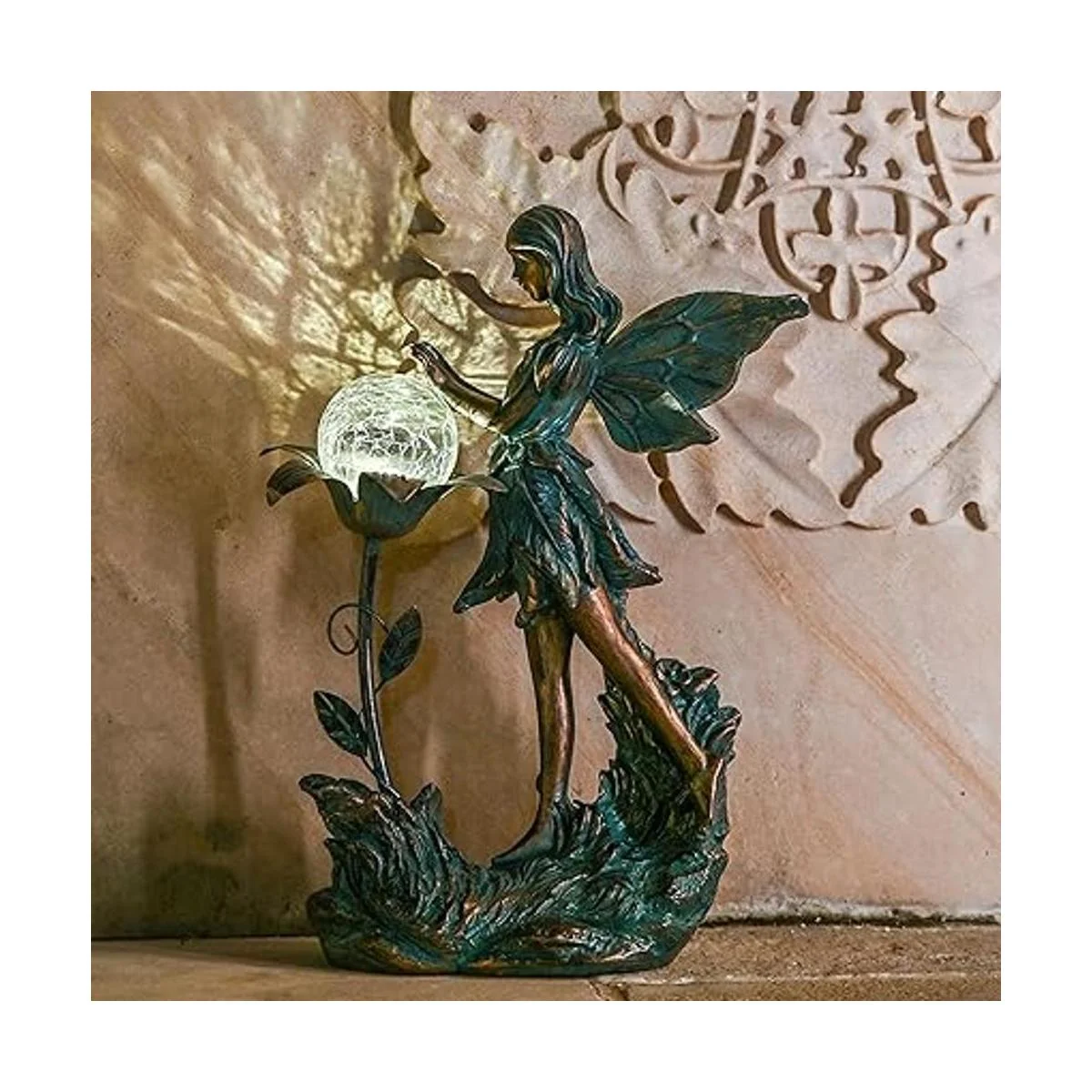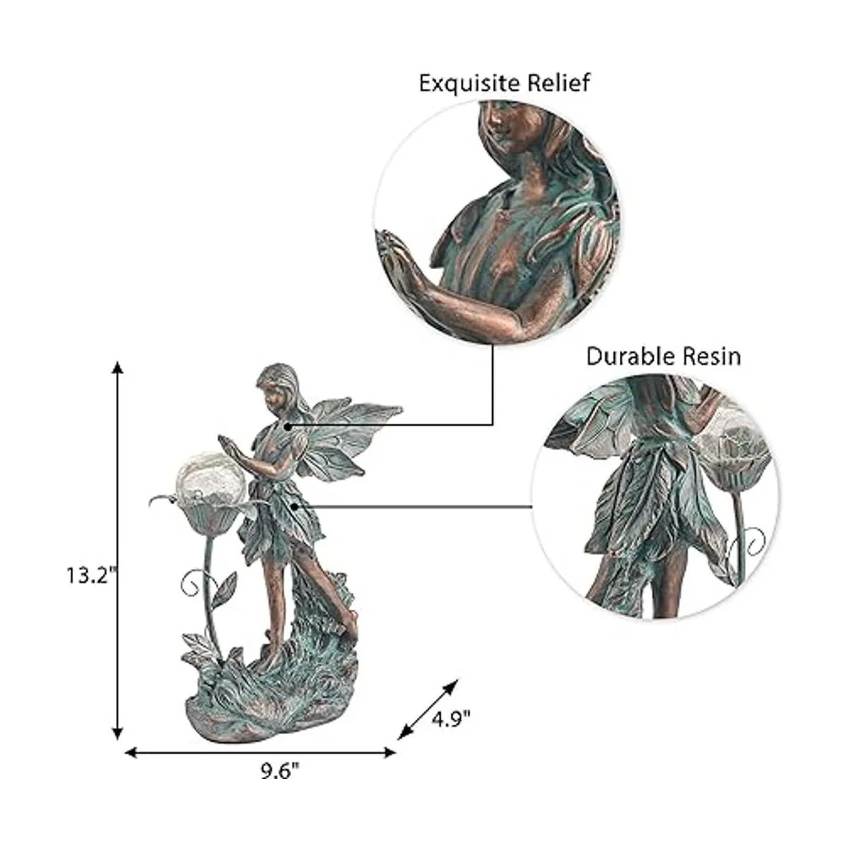 Diseño original: TERESAS COLLECTIONS es una marca minorista que se adhiere a diseños originales. Inspirado en el ángel en el jardín, el elegante hada de jardín de pie toca el globo de cristal, ansioso por traer amor y calidez a todo tu jardín