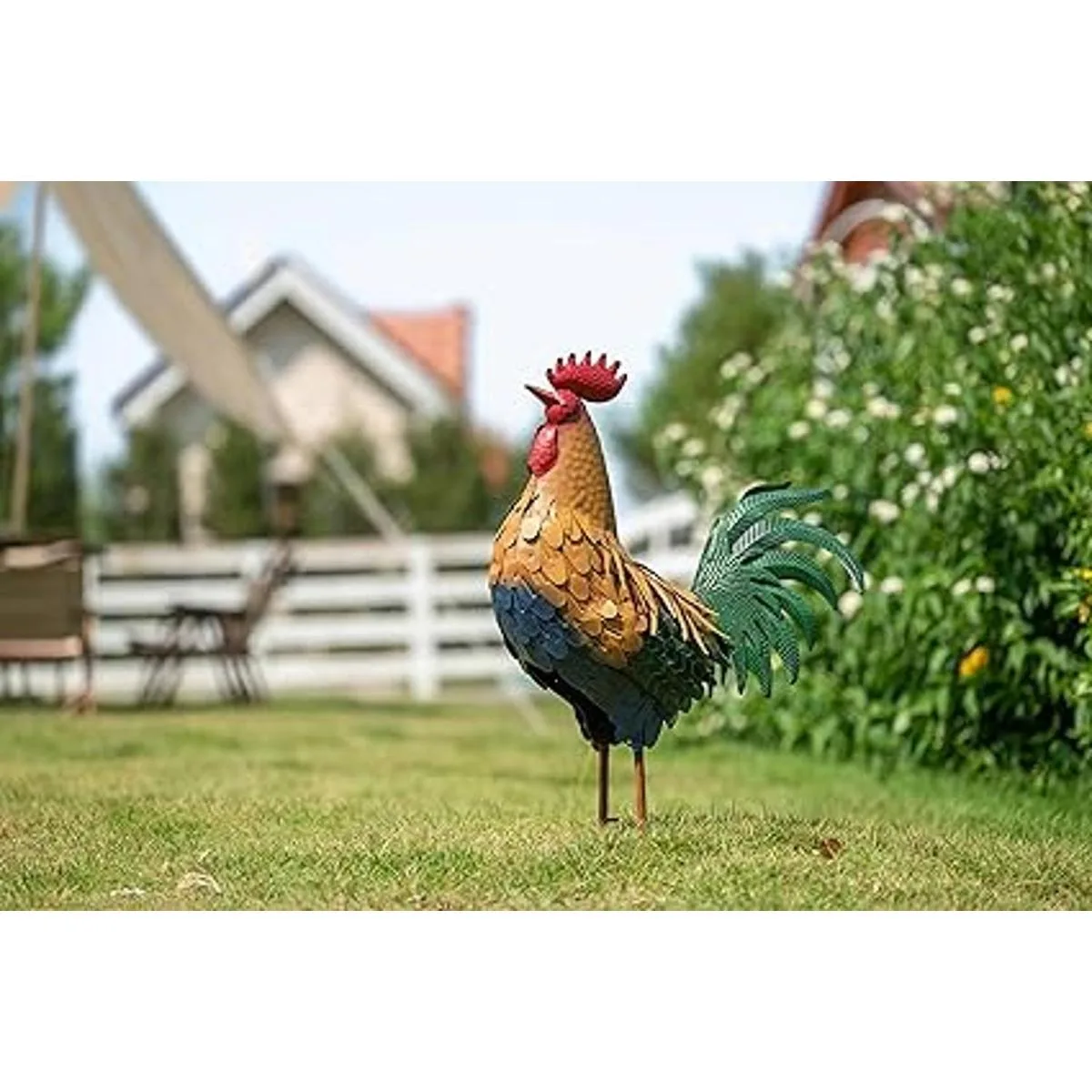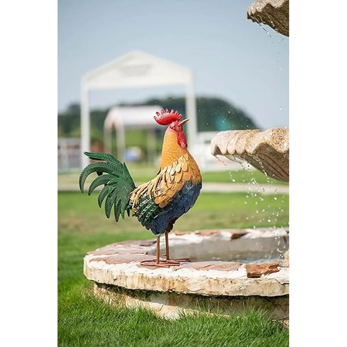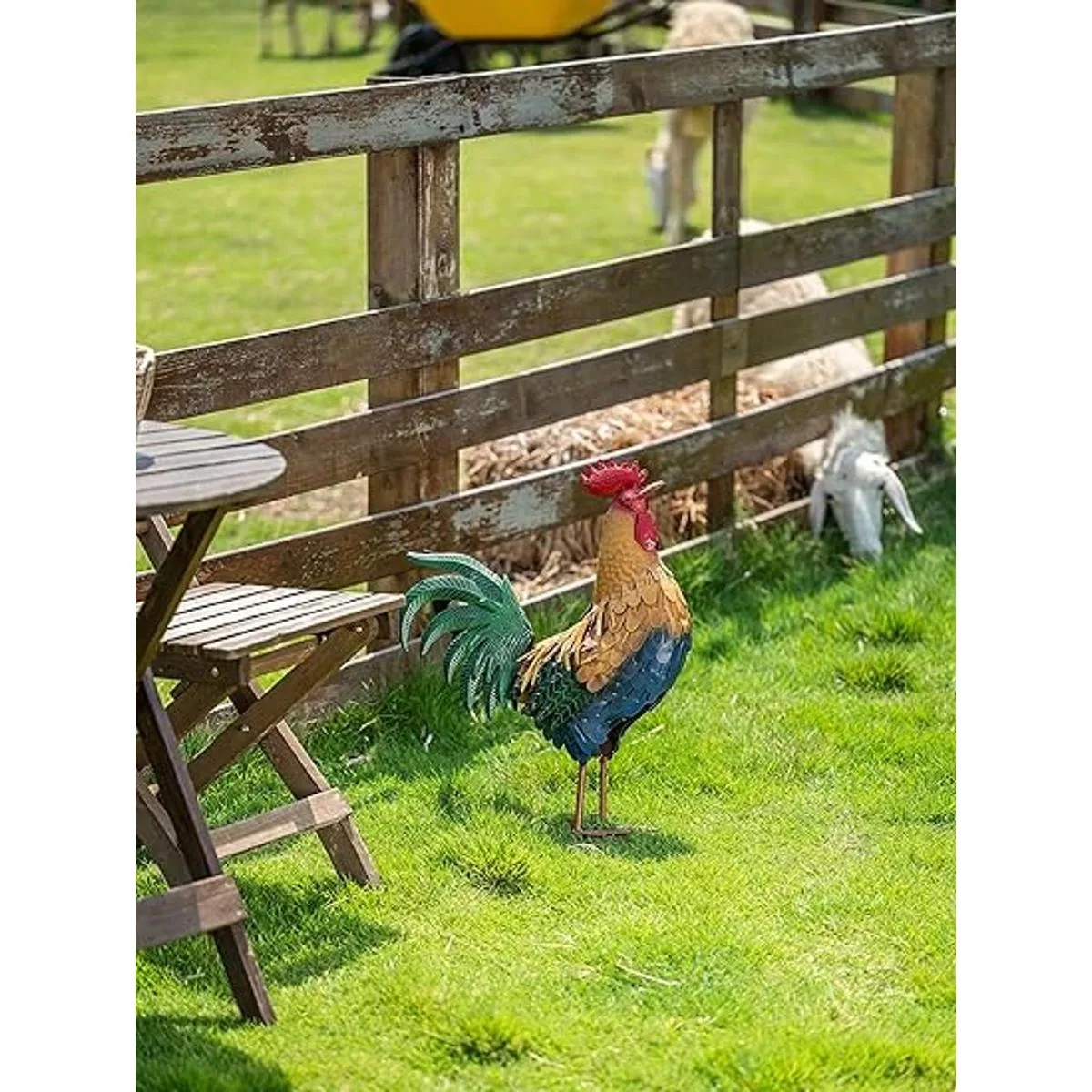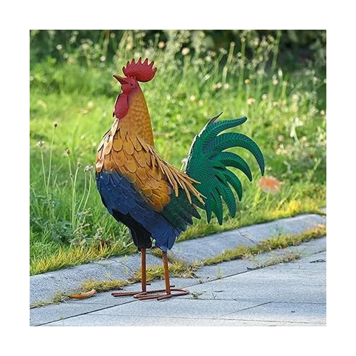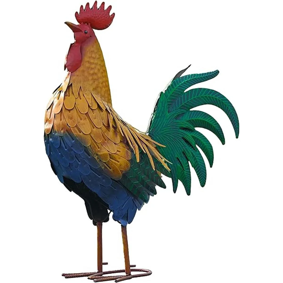 TERESAS COLLECTIONS Estatuas de jardín de gallo de metal grande de 21 pulgadas, figuras de escultura de pollo al aire libre, arte de patio de aves para decoración de granja, patio, césped, cocina