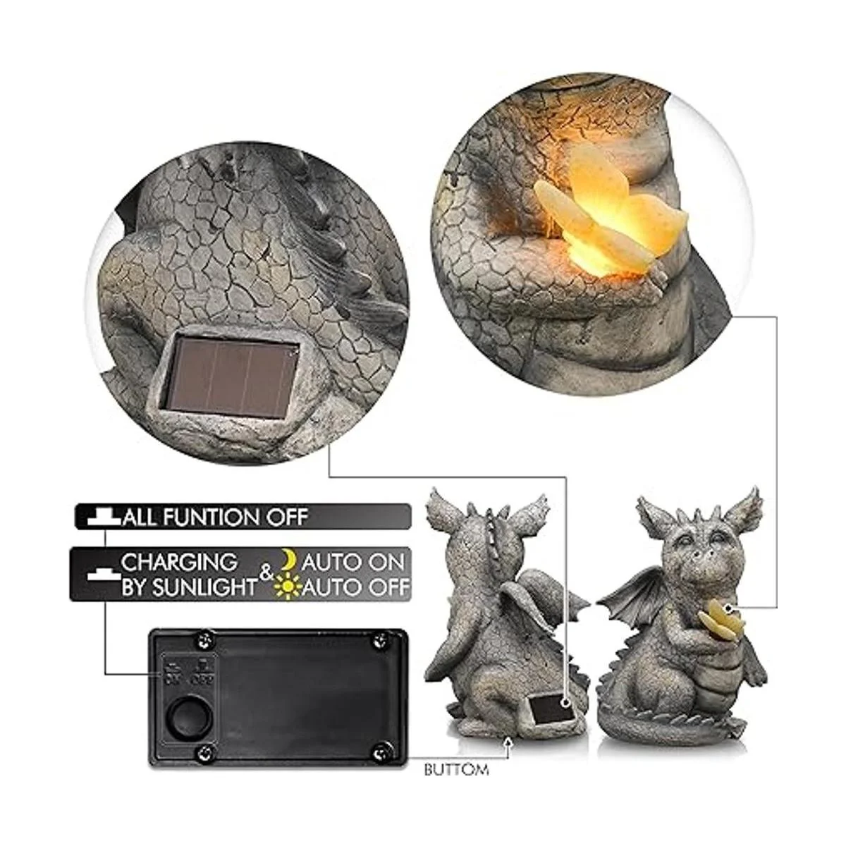 Calidad prémium: la figura de dragón bebé está hecha de materiales de resina duraderos, impermeable y antidecoloración. Esta estatua está equipada con chips solares avanzados, que pueden iluminar durante 8 horas