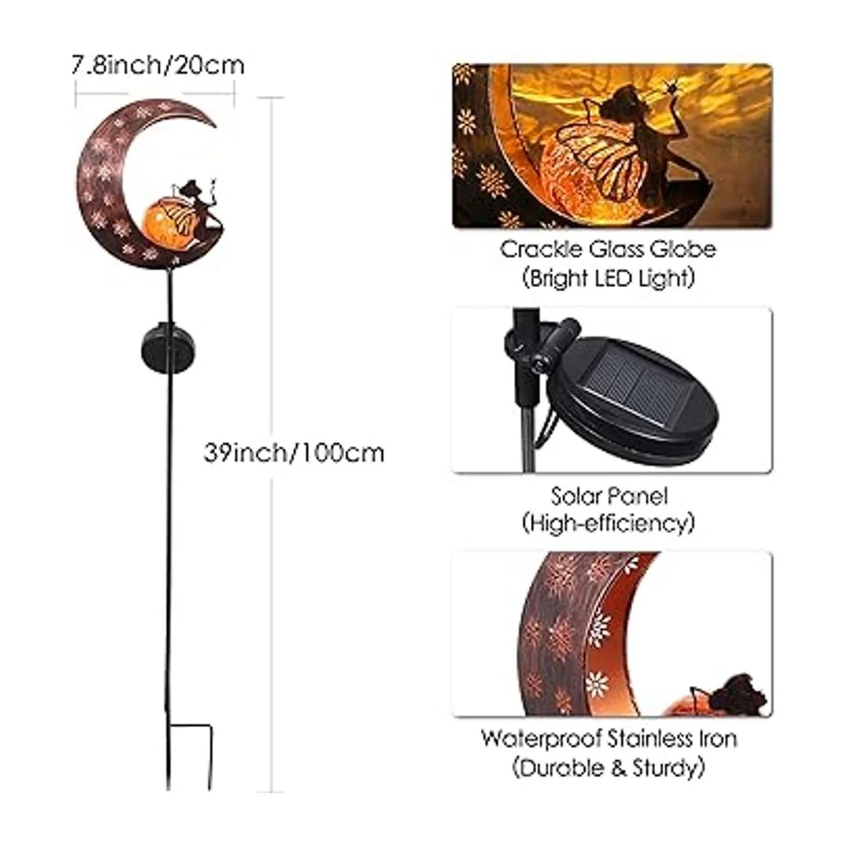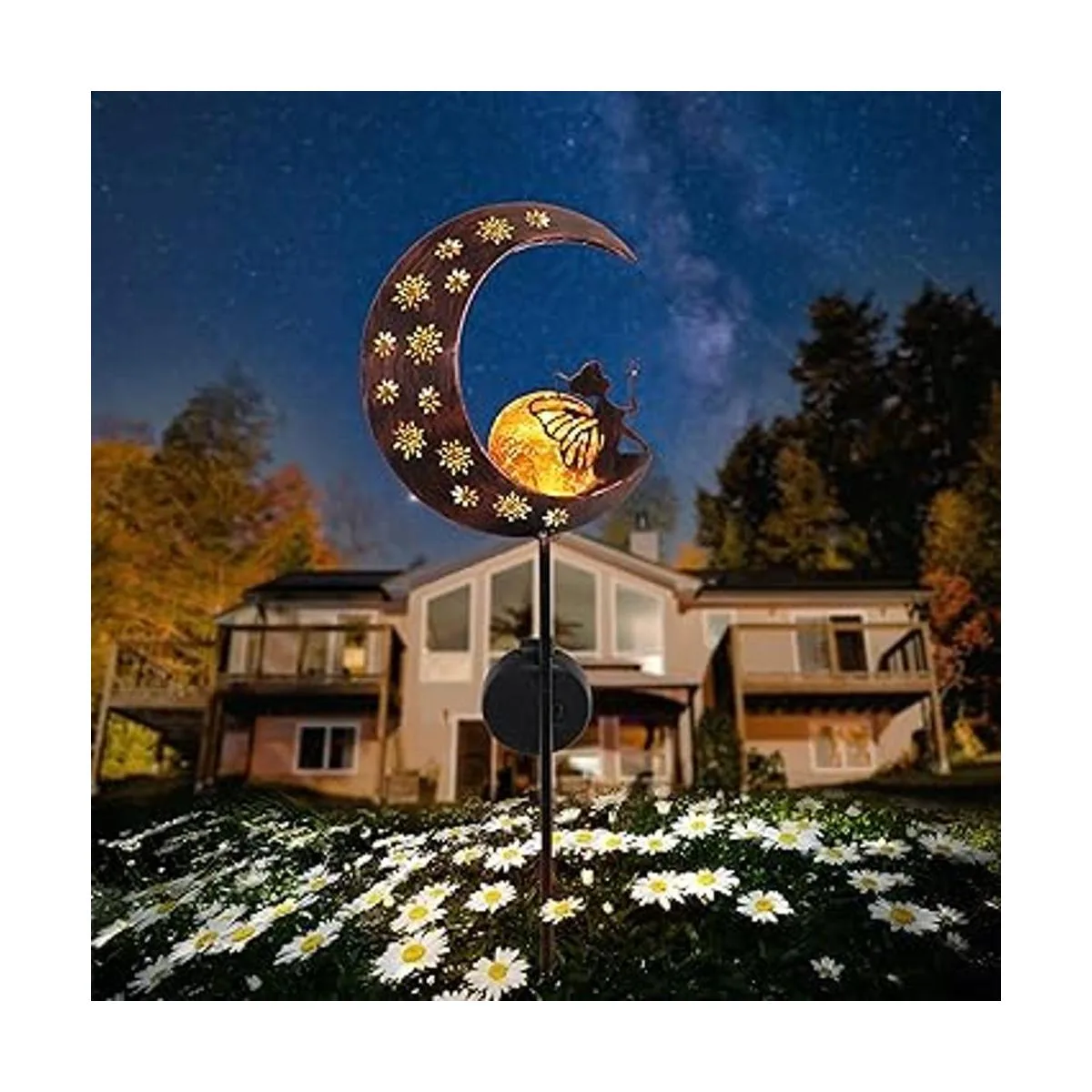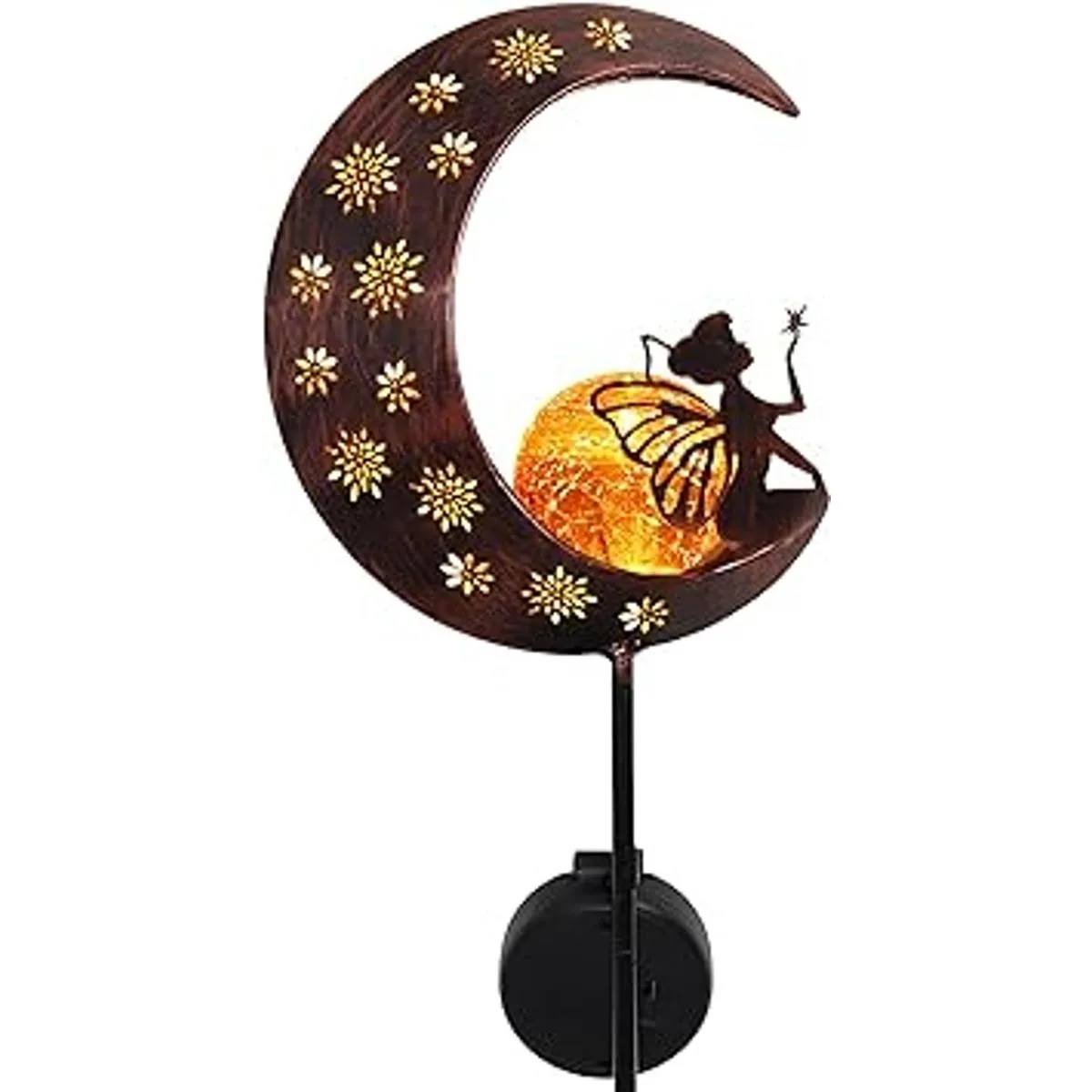 TERESAS COLLECTIONS Luces solares de estaca para jardín de luna y hadas de 39 pulgadas para exteriores, decoración de jardín de ángel para exteriores, decoración de jardín para césped exterior, decoración de patio, paisaje, caminos