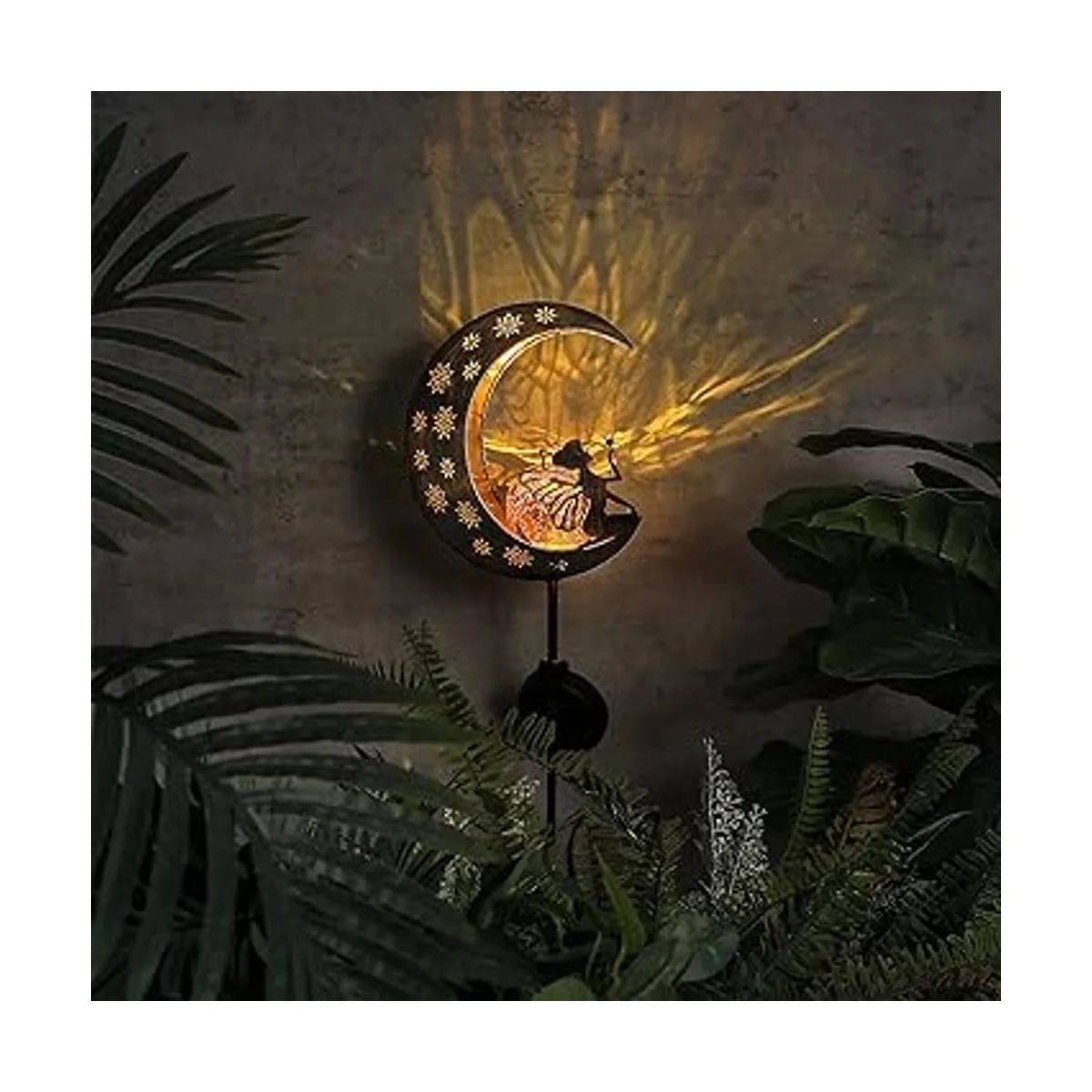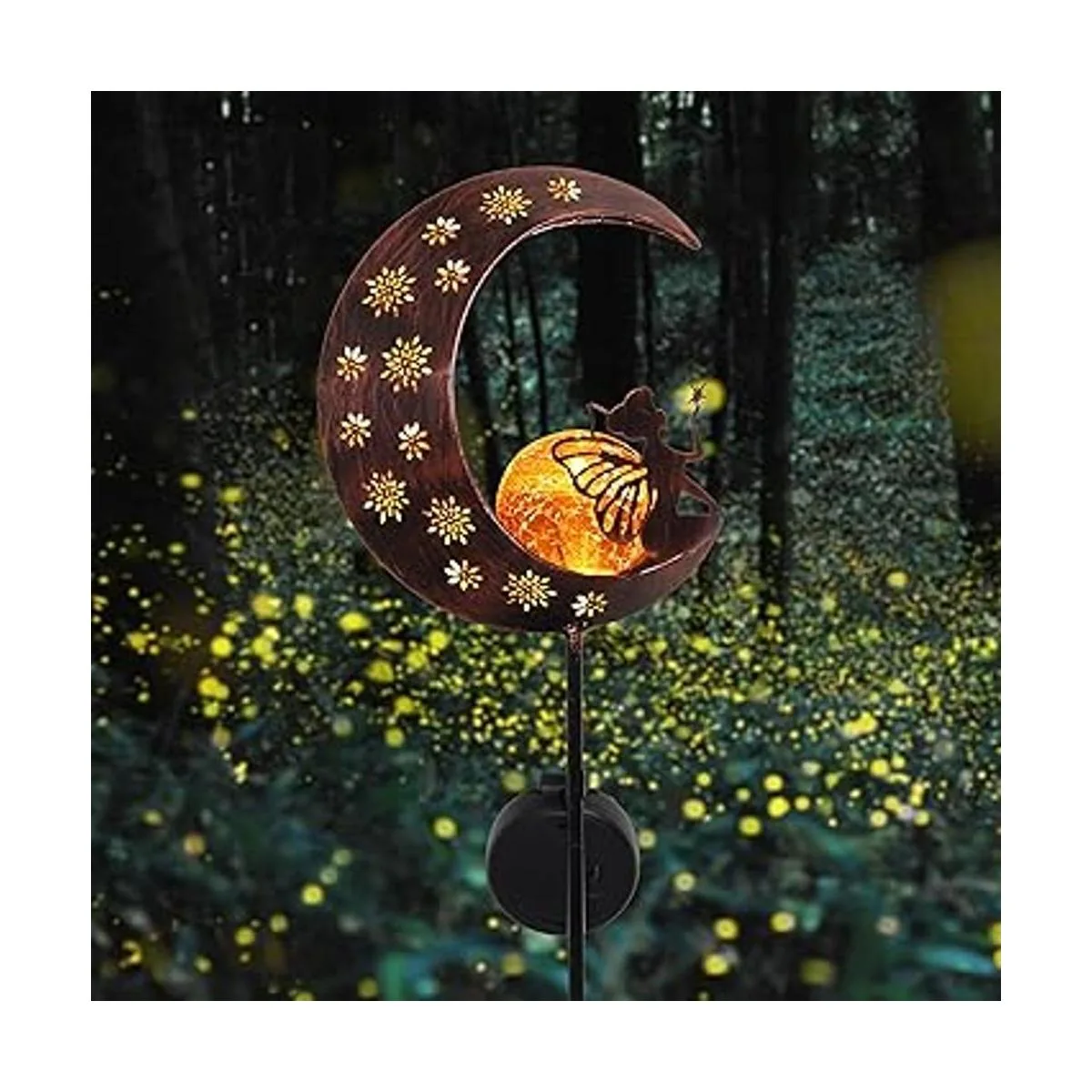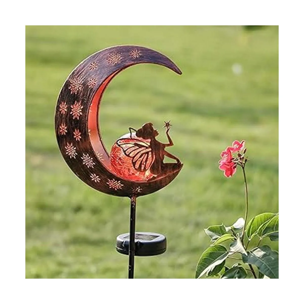 TERESAS COLLECTIONS Luces solares de estaca para jardín de luna y hadas de 39 pulgadas para exteriores, decoración de jardín de ángel para exteriores, decoración de jardín para césped exterior, decoración de patio, paisaje, caminos