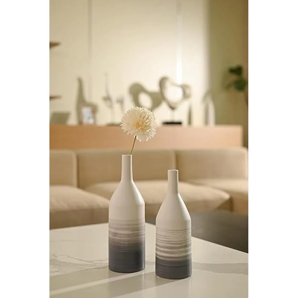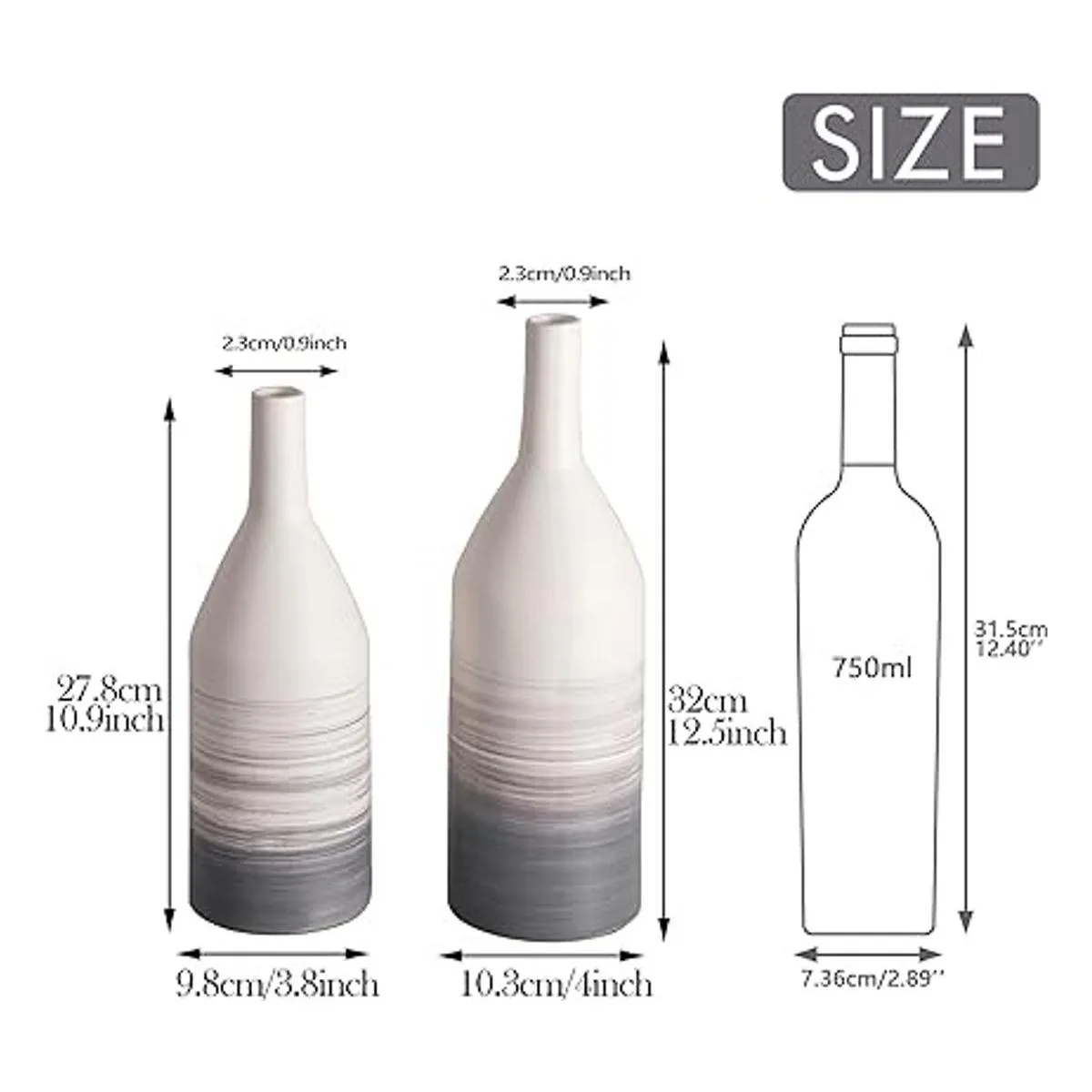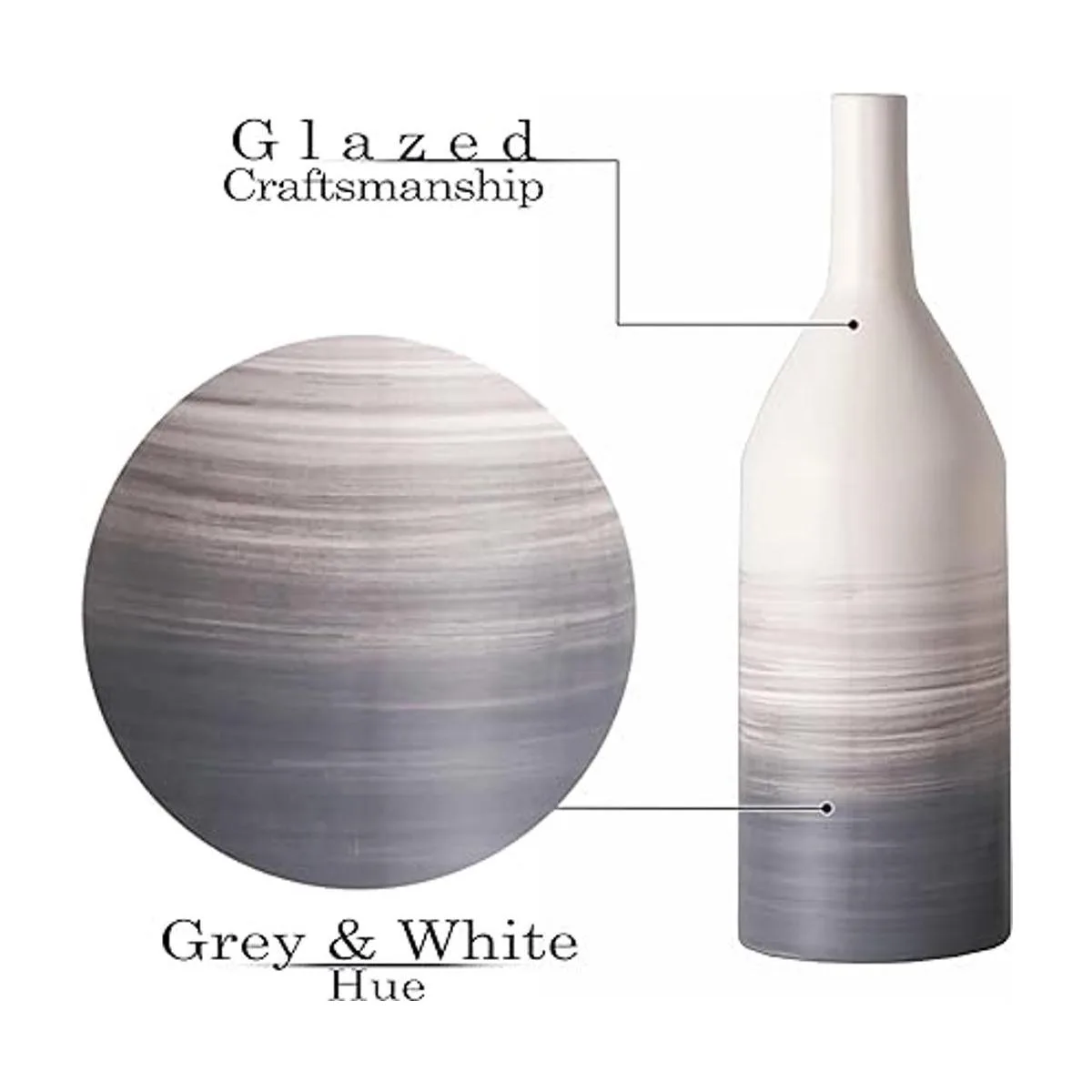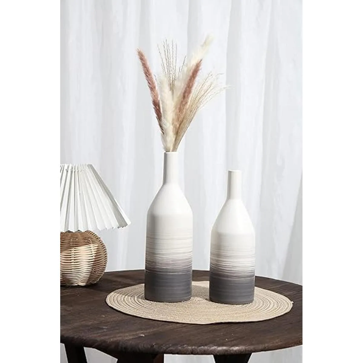 TERESAS COLLECTIONS Moderno jarrón de cerámica para decoración del hogar, juego de 2 jarras decorativas blancas y grises, elegante jarrón para hierba de pampa, repisa, chimenea, cocina, sala de estar, decoración de estantes de 10.9 pulgadas y 12.5 pulgadas