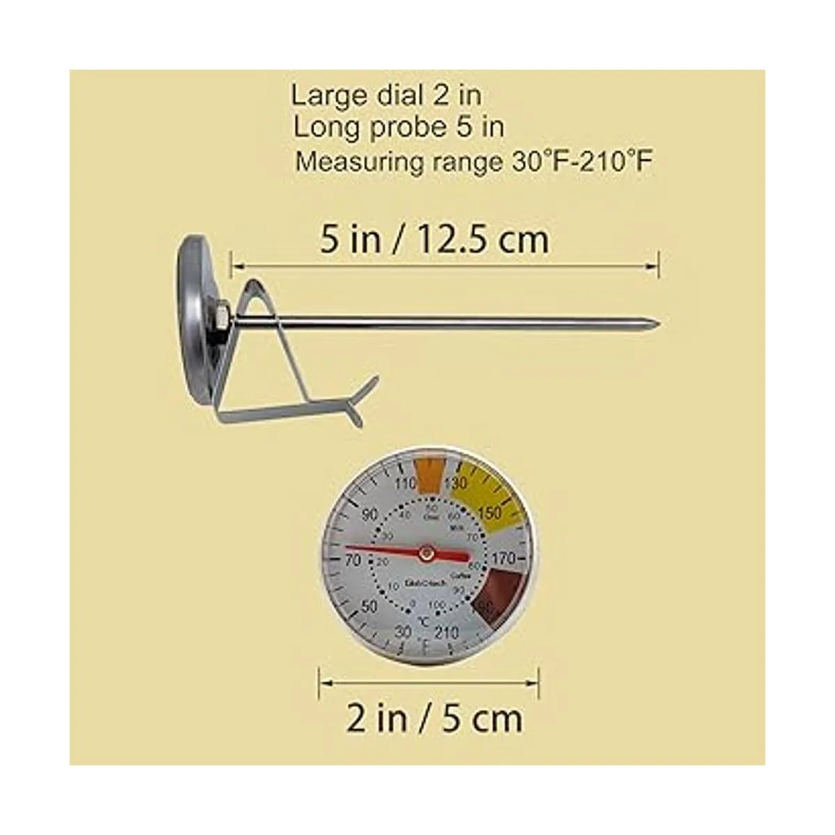 Termómetro de espuma de leche para café y chocolate Termómetro espumoso de acero inoxidable para jarra de vapor de 12 onzas, 20 y 32 onzas Espresso de 2 pulgadas Dail 5 pulgadas