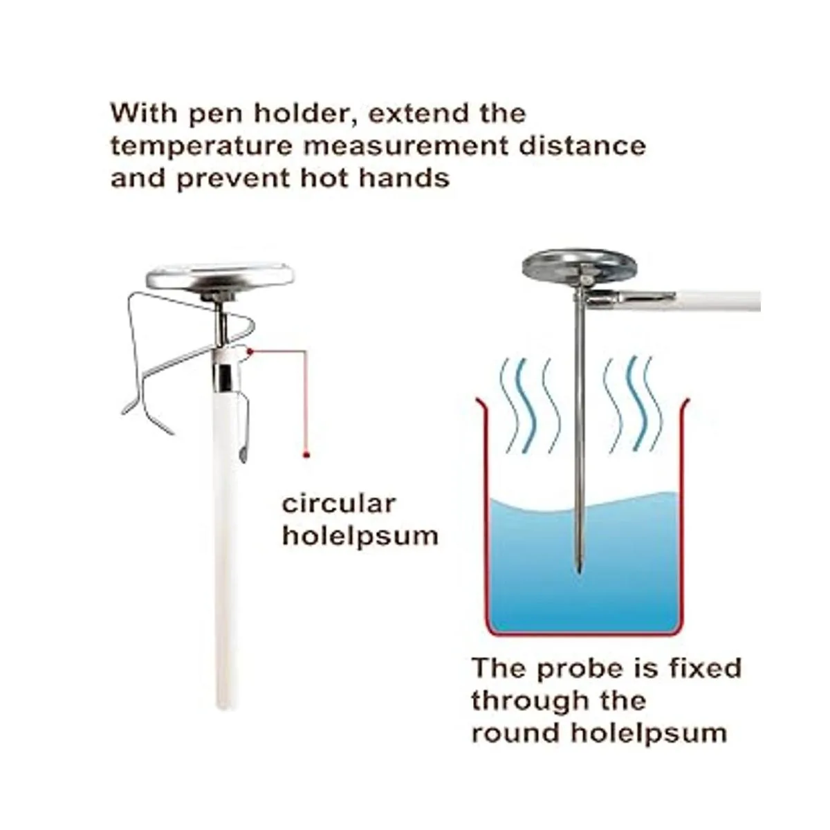 Clip de posicionamiento: el borde del horno. Y coloca el extremo del tallo a la profundidad adecuada en el líquido, 2 pulgadas, evita tocar la parte inferior de la olla. Libera tu mano, evita que el medidor caiga en recipientes de alta temperatura, seguro y cómodo.
