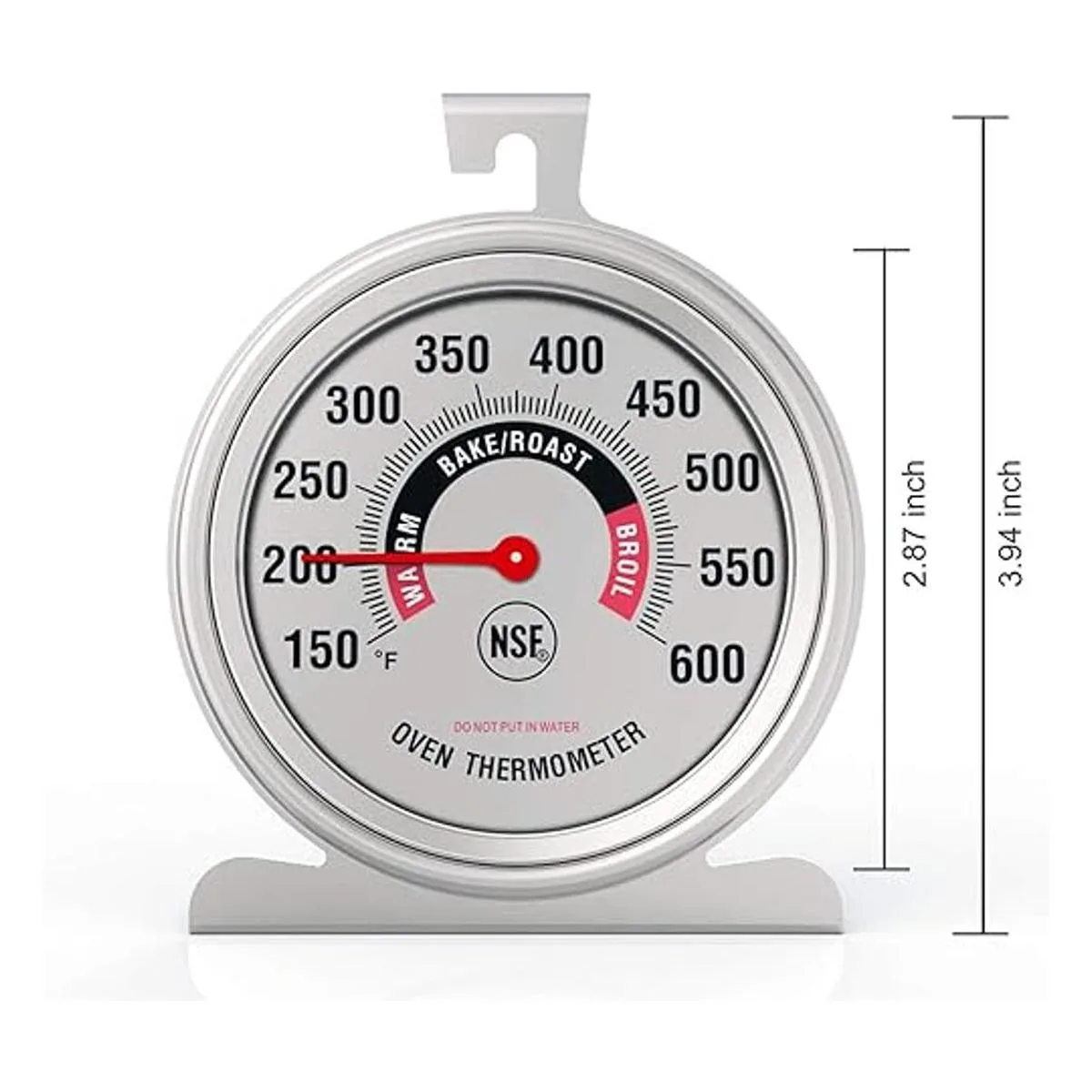 Termómetro grande de horno de 3.5 pulgadas con colgador extra grande y placa base, horno sin necesidad de seguridad, certificado NSF, fácil de leer, número a gran escala, no se decolora para cocinar durante mucho tiempo en horno o parrilla