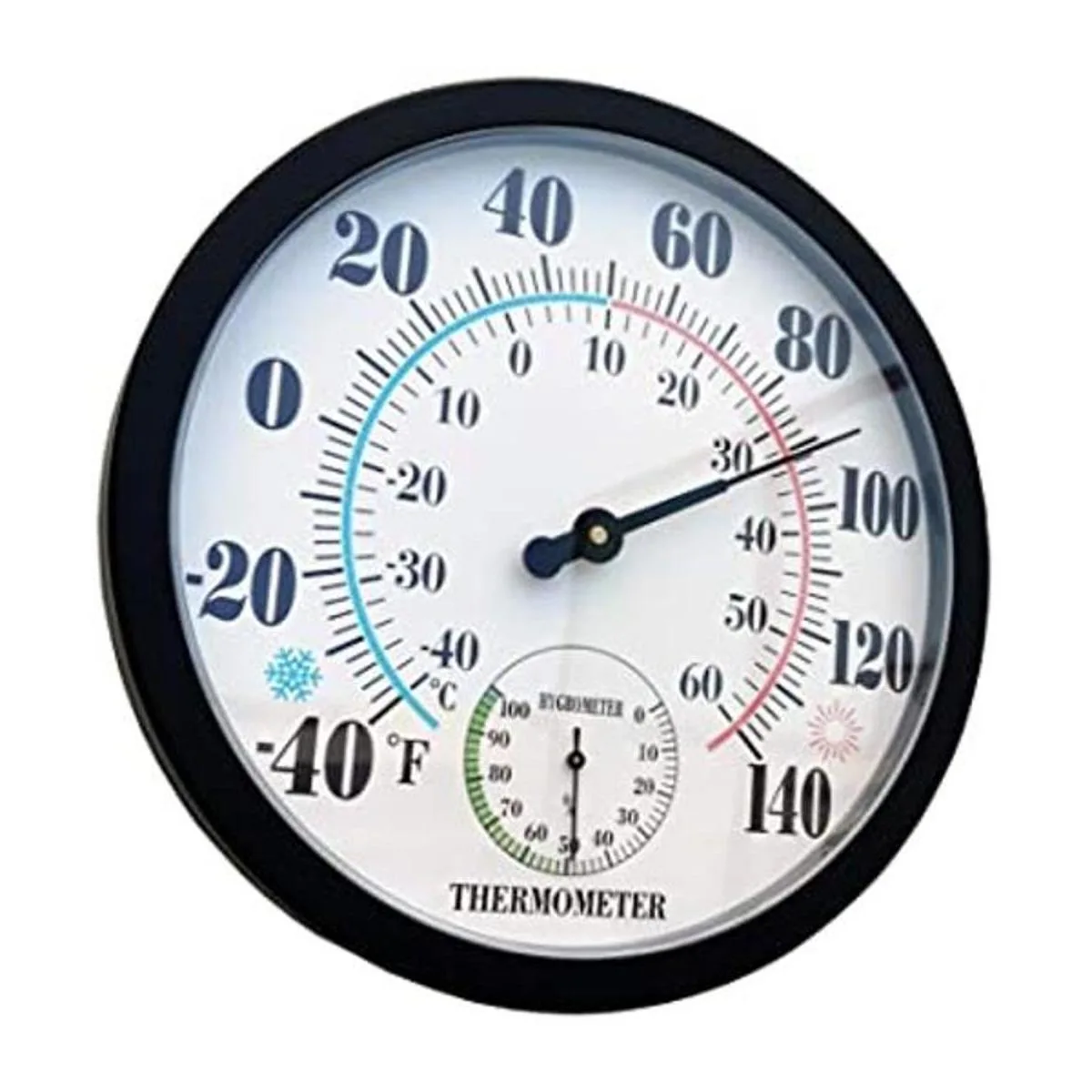 Termómetro para interiores y exteriores, termómetro de pared grande, higrómetro impermeable, no requiere batería negro